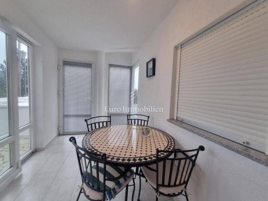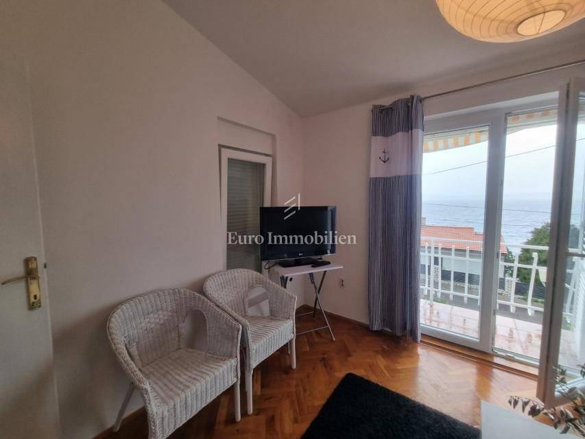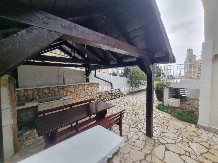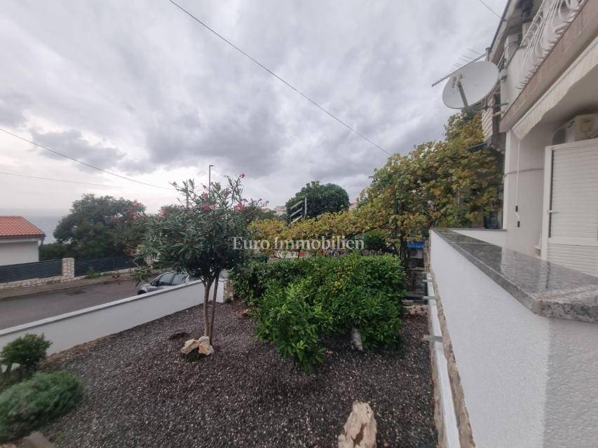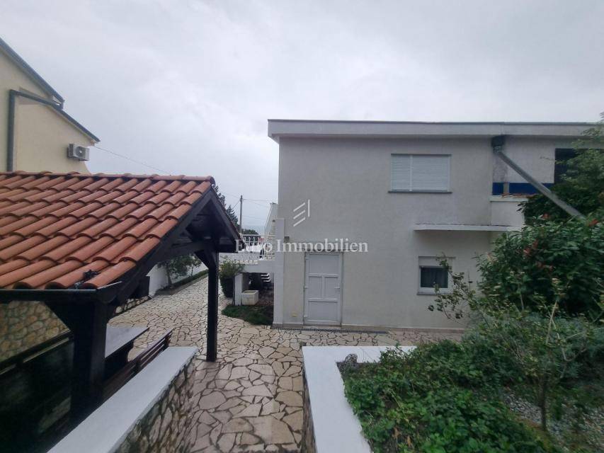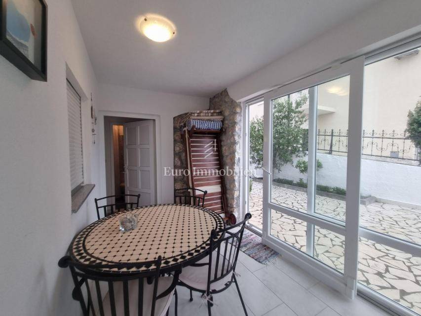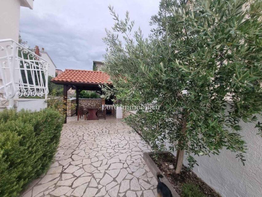 Novi Vinodolski - house for sale on a landscaped plot of 270m2. The house consists of two one-room apartments, both of which have a beautiful view of the sea. Inside the landscaped garden there is a gazebo with a barbecue, a well-maintained garden planted with Mediterranean plants, and a covered parking space and storage room. The property is air-conditioned and fully furnished and ready for use. The house is ideal for rest and enjoyment, but also for a year-round stay.