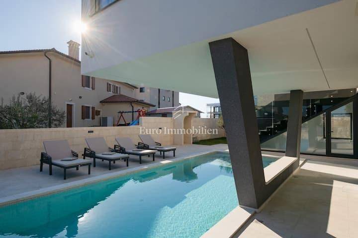 Located in a great location 200 meters from the beach and marina, surrounded by beautiful modern houses, this detached house with high-quality interior and exterior materials is for sale.