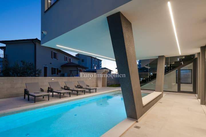 The house itself consists of 4 floors connected by a staircase and a panoramic elevator.