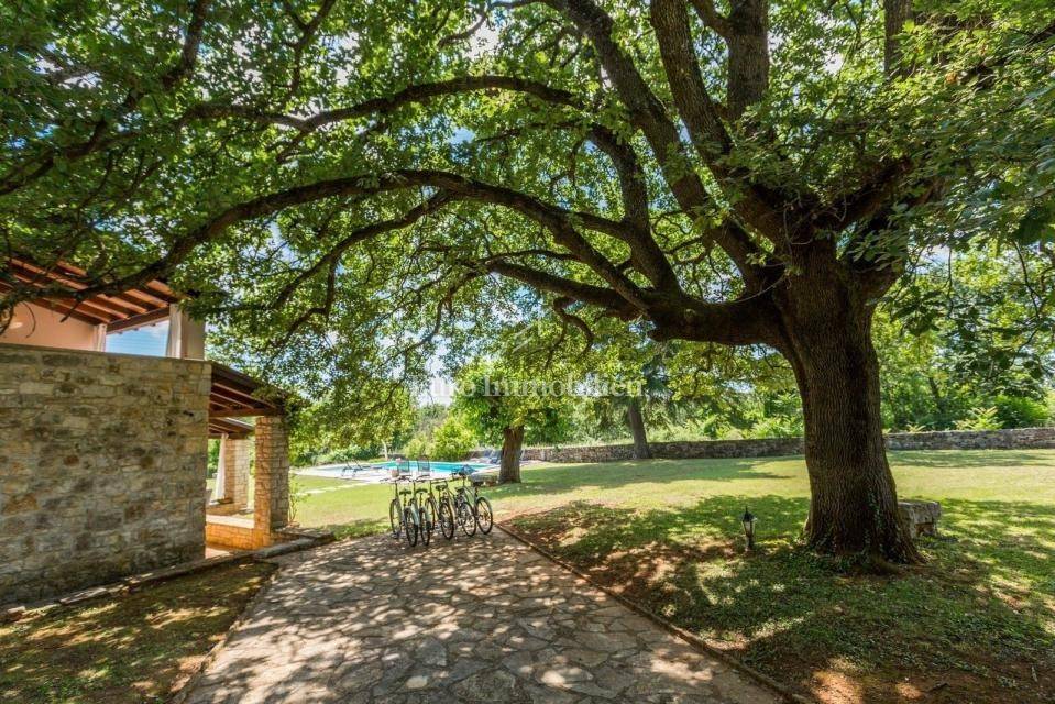A charming stone villa is located on the edge of the construction zone of a small Istrian autochthonous village not far from Poreč (12 km). It was built before 1968, but completely renovated in 2009. It is surrounded by nature and has a spacious garden of 1430 m2. At the entrance to the garden, it is adorned with a century-old oak tree. The house consists of two floors. On the ground floor there is an entrance hall, bathroom, living room, dining room, bedroom and kitchen. All rooms on the ground floor have communication with the garden, and the kitchen also has an exit to the summer kitchen located in the side part of the house. There is a fireplace in the living room, as well as in the summer kitchen. On the first floor there are two more bedrooms and one bathroom, as well as a spacious covered terrace. In the garden there is a 32 m2 swimming pool with an addition for children (shallow water), shower, garden house, summer kitchen with a space for socializing, parking spaces, and a spacious green area. The entire garden is fenced. Heating is regulated by a central gas system and a fireplace, while air conditioning is used for cooling. There is also a central hot water boiler. The facade was renovated 3 years ago. The house is ideal for tourist rental, but since it has a central heating system, it is also suitable for year-round living. The property is available immediately!