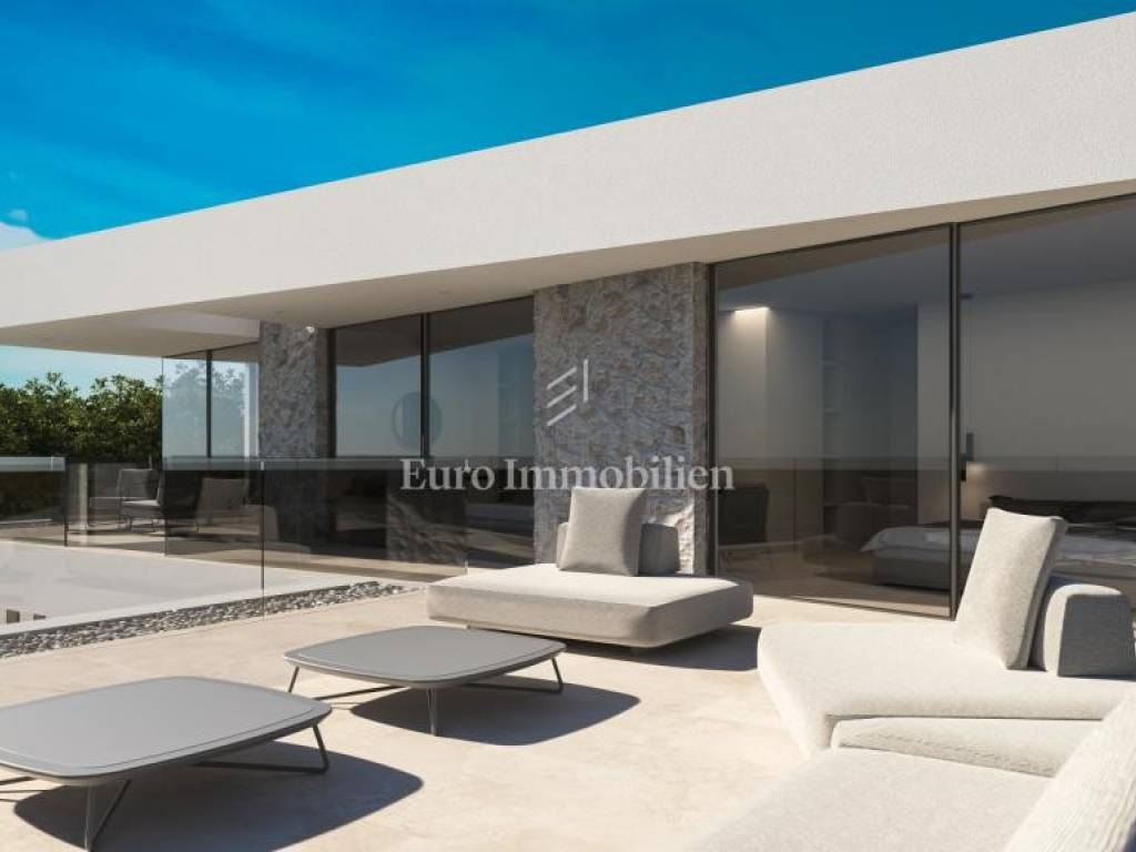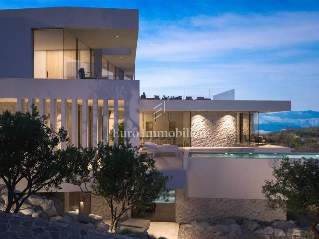 Building land of 926 m2 with a project and a permit for the construction of a modern villa with a swimming pool and sea view. The designed villa extends over a total of three floors and has a total living area of 359.9 m2.