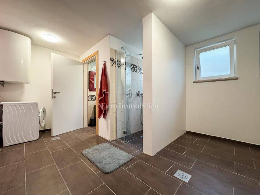 Ground floor – spacious and bright kitchen with dining area and comfortable living room in an open concept, modern bathroom and practical storage