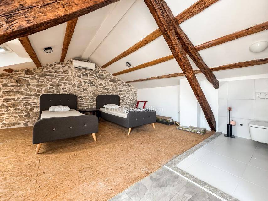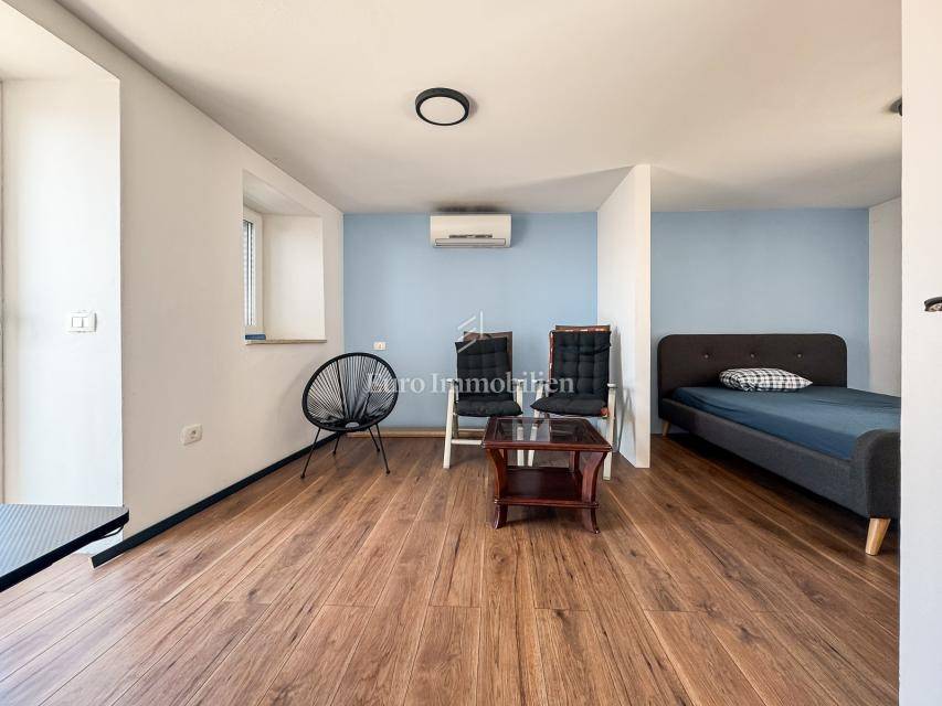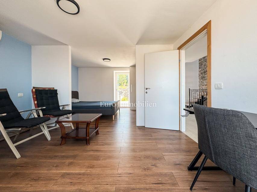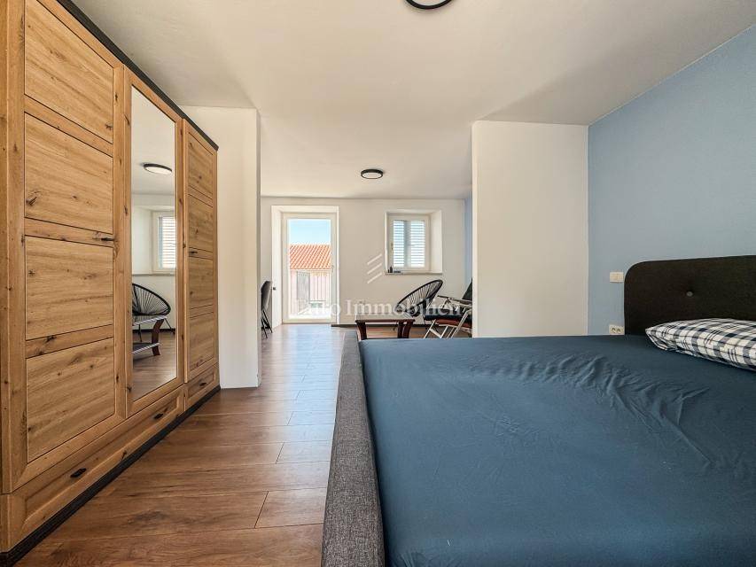 For sale is a tastefully decorated and fully furnished terraced house, located in the picturesque and peaceful village of Brovinje, just 1 km from the crystal clear sea. This property offers the perfect blend of comfort, functionality and Mediterranean charm.