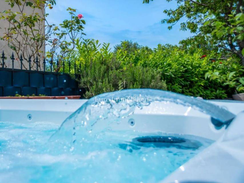 The yard is beautifully landscaped and greened with Mediterranean plants. The house has four parking spaces and a beautifully landscaped 20 m2 storage room across the road on an area of ​​270 m2.