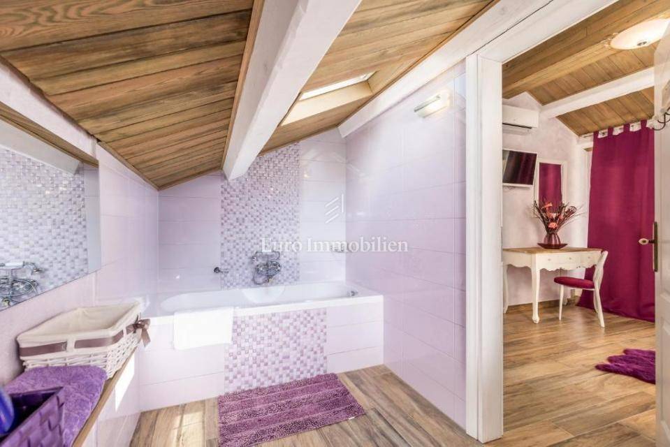 The house in Tribalj in the hinterland of Crikvenica has a living area of 300 m2 with a garden. It consists of a ground floor, a first floor and a high attic.
