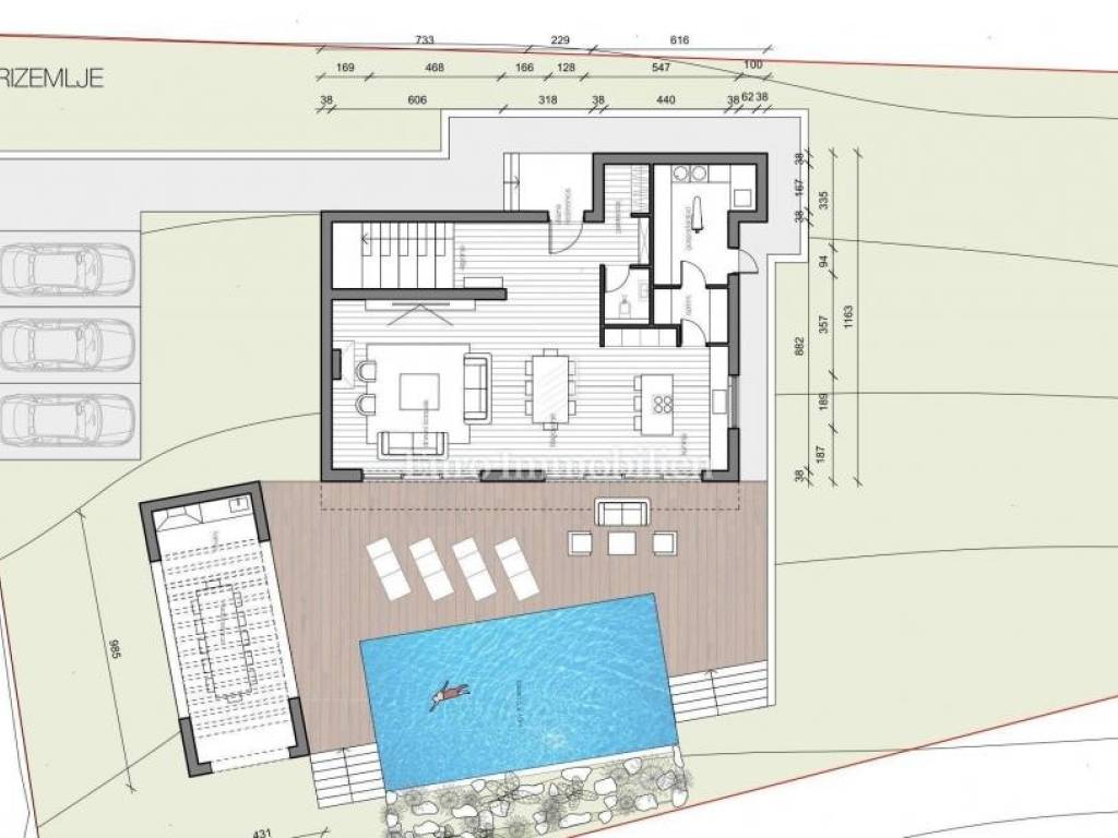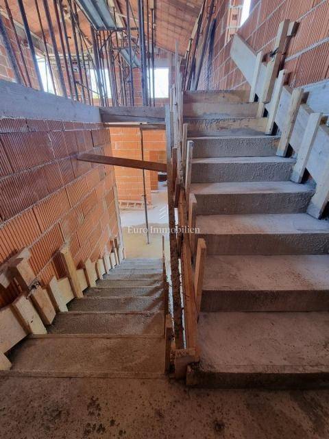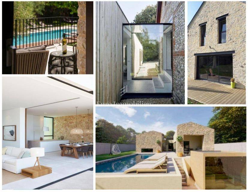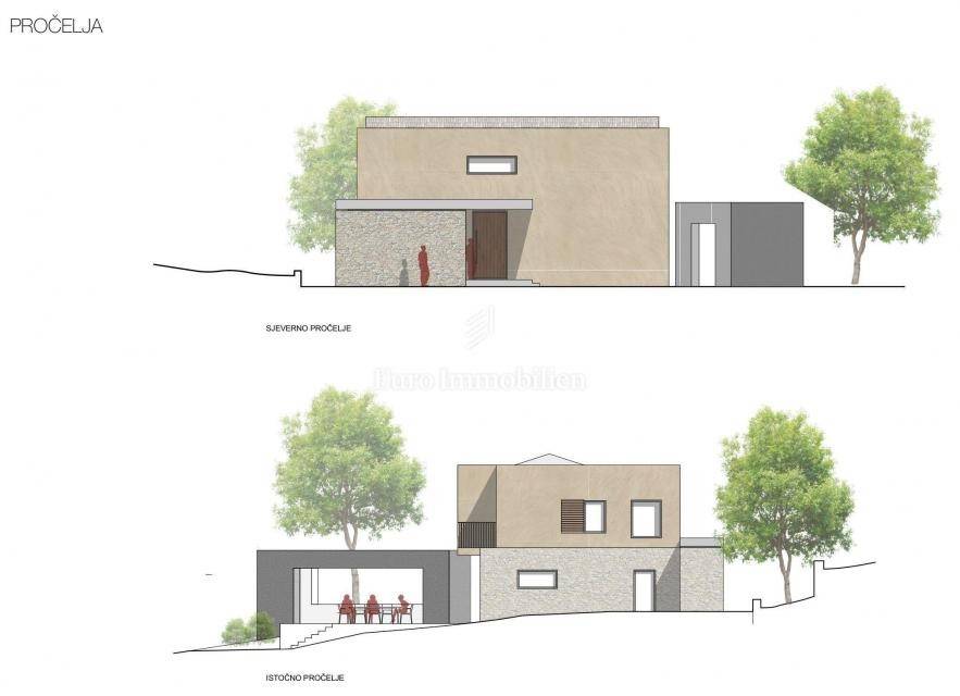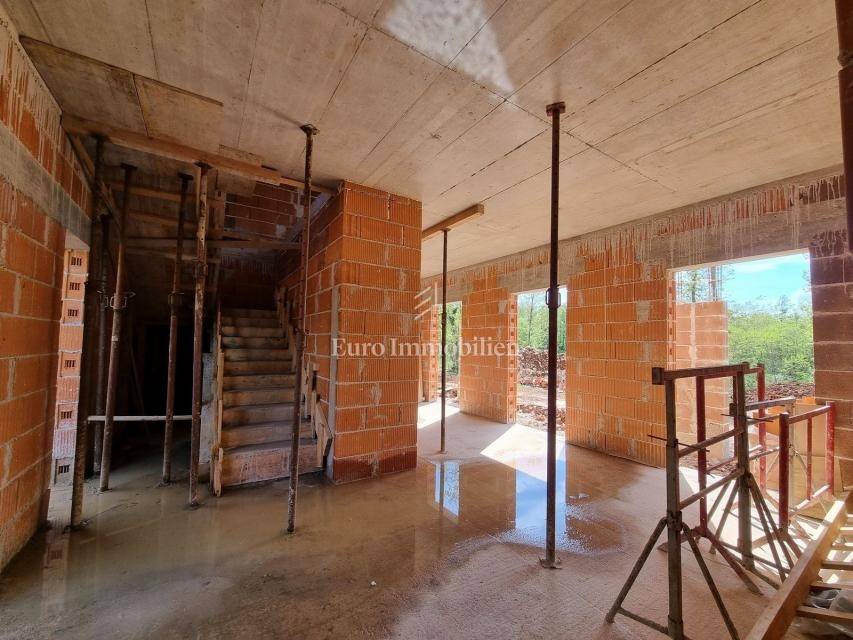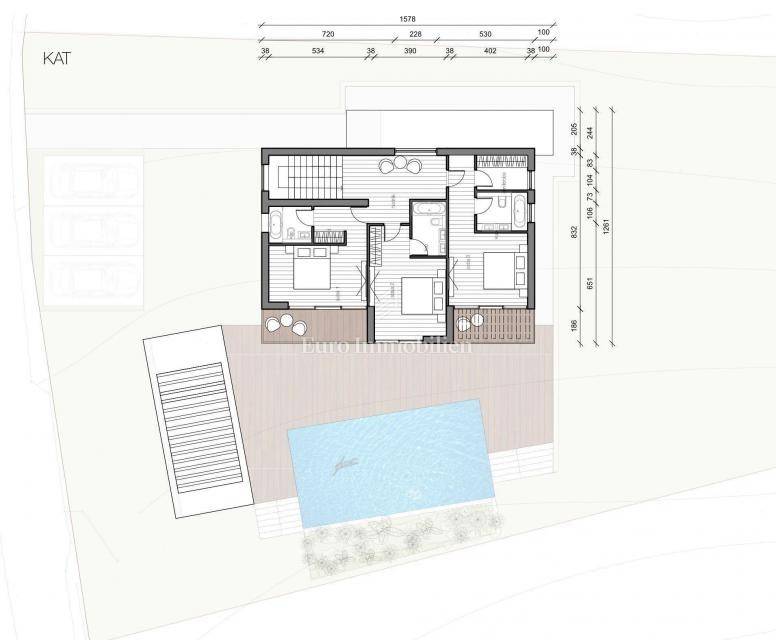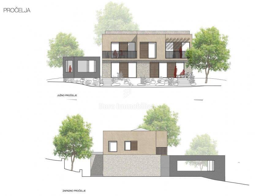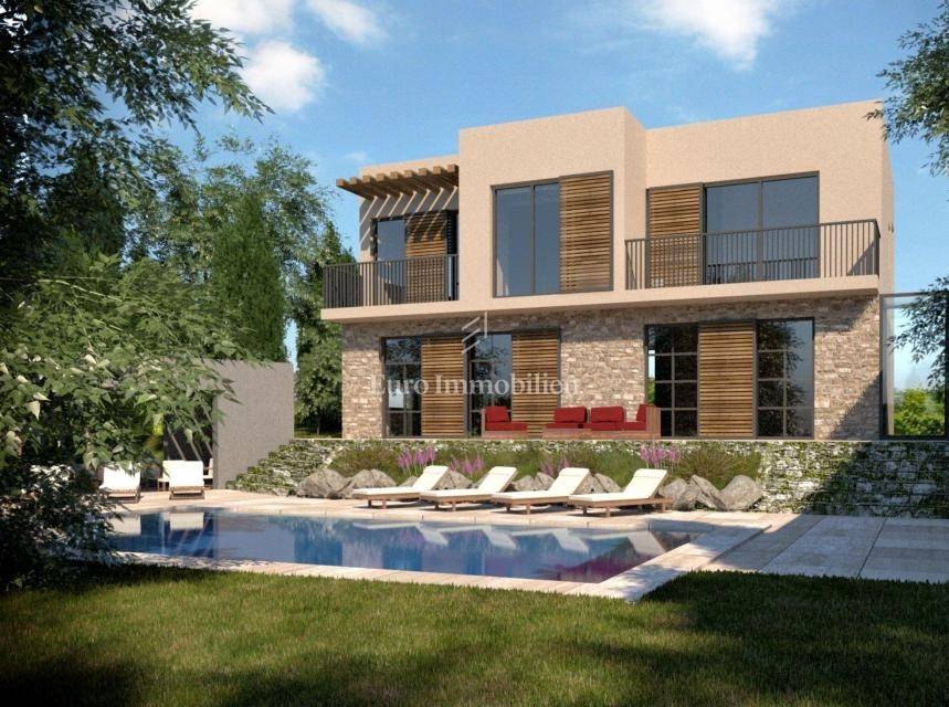 The villa is a combination of Istrian and modern style, spreads over of 180 m2 distributed throughout the ground and the first floor. On the ground floor will be the entrance hall, kitchen, dining room and living room, technical room, toilet and one bedroom with a private bathroom. Internal stairs lead to the first floor, where there will be two bedrooms, each with its own bathroom.