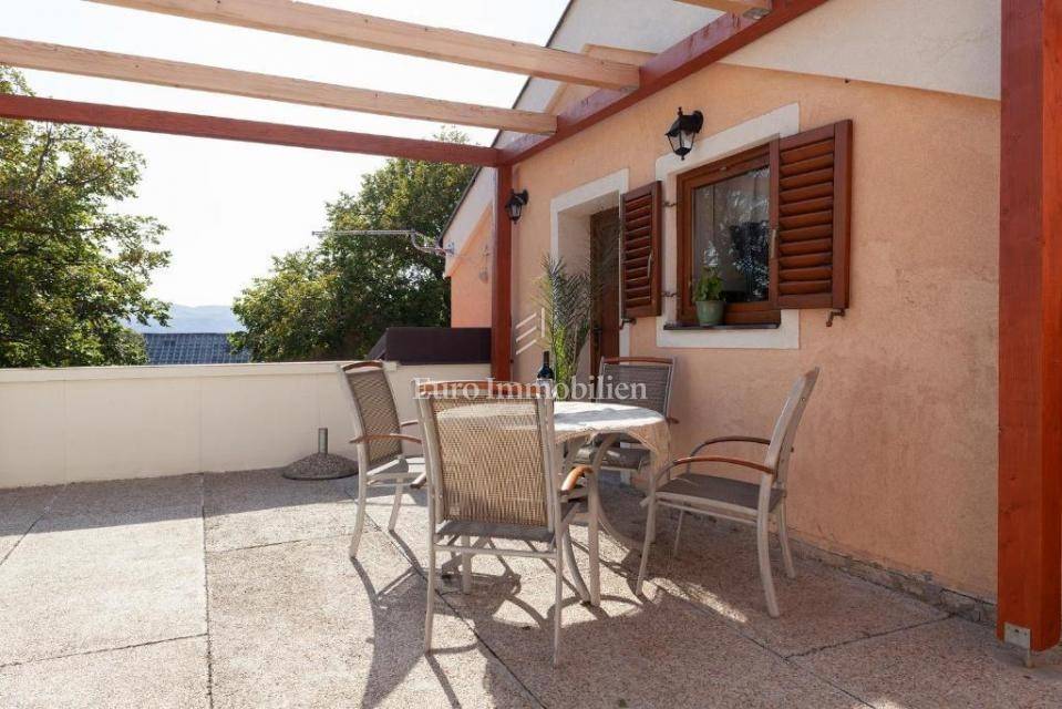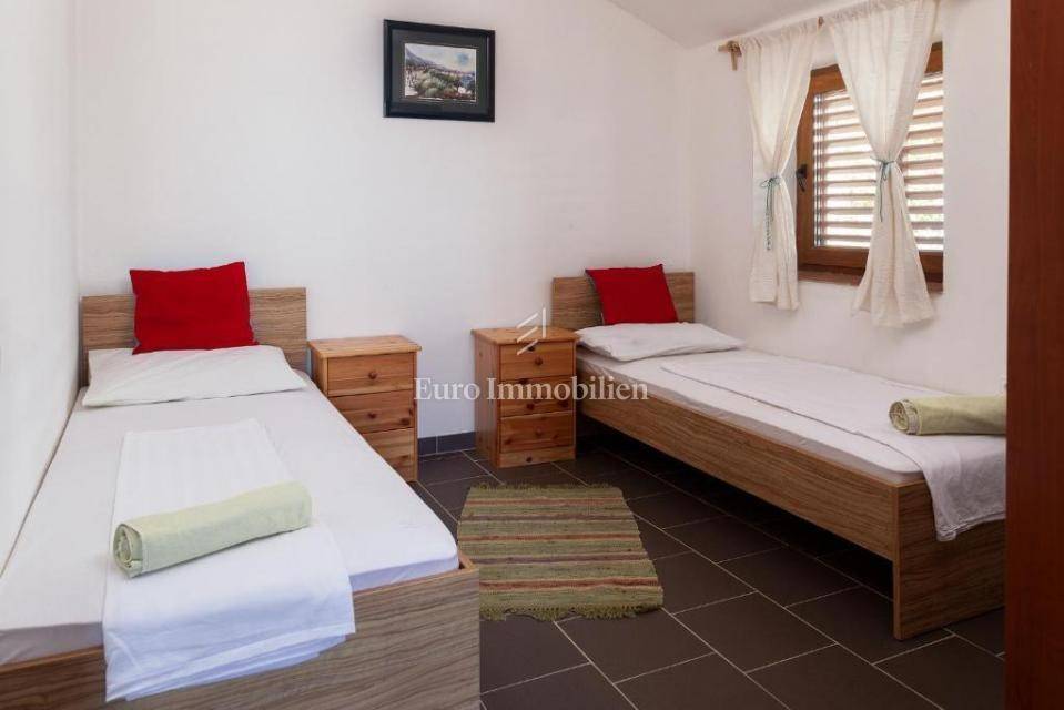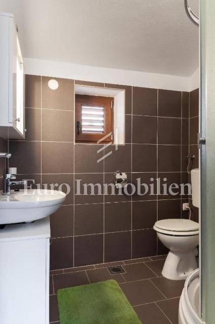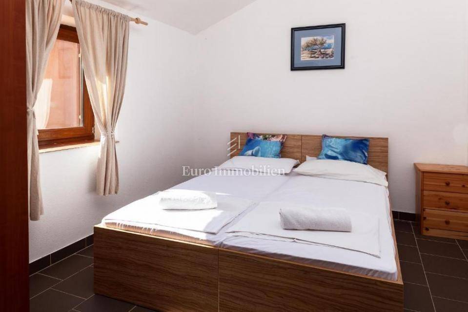 The house of 115 m2 is spread over the ground floor and first floor, and consists of two two-room apartments with separate entrances. The apartments are fully equipped. On the ground floor there is a covered terrace and a lawn, while on the first floor there is a large terrace with sea view.