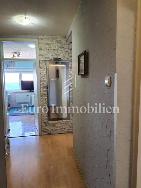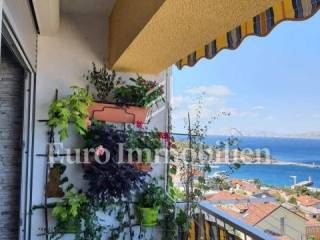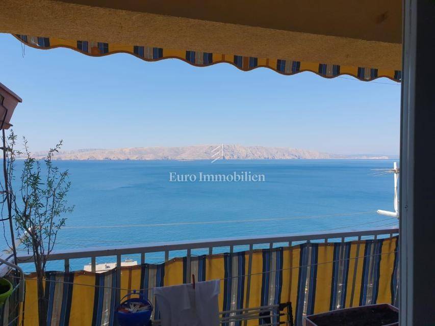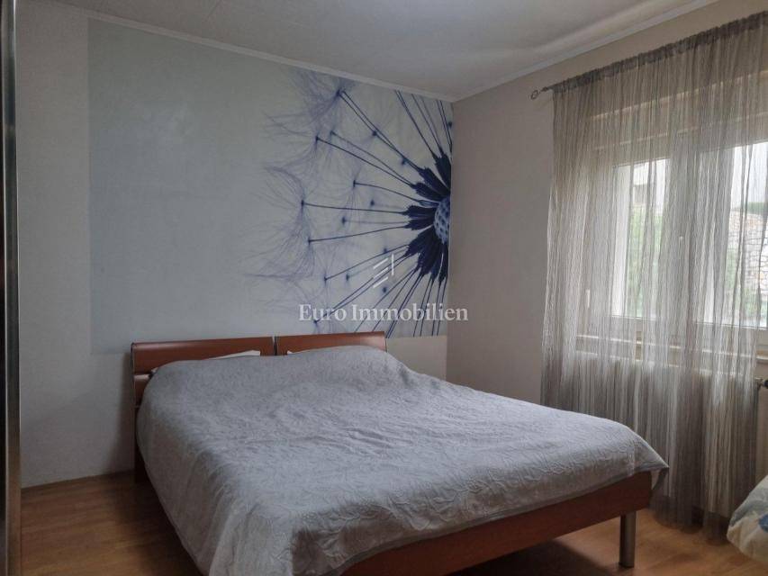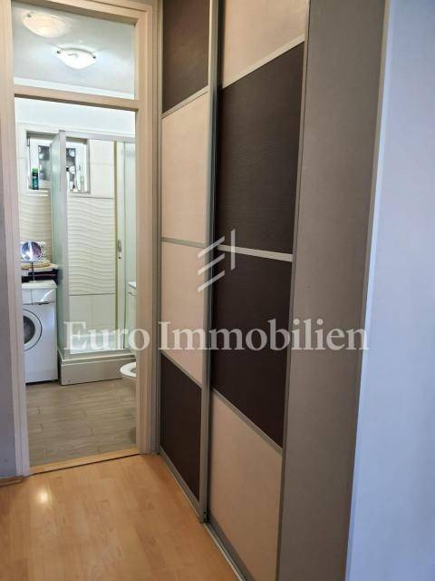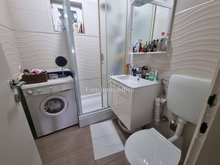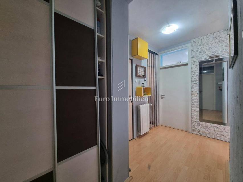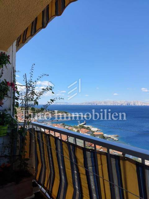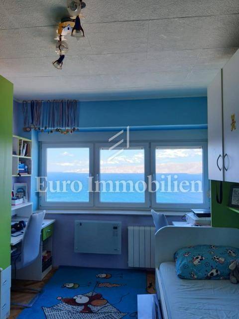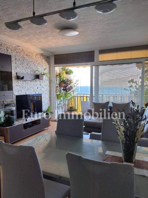 The apartment has a total area of 64 m2 and consists of two bedrooms, a kitchen with a dining room, a living room, a hallway, a storage room and a balcony with a beautiful view of the sea and the city. The apartment has a woodshed of 3 m2 on the ground floor of the building and a garage of 17 m2. It is sold fully furnished.