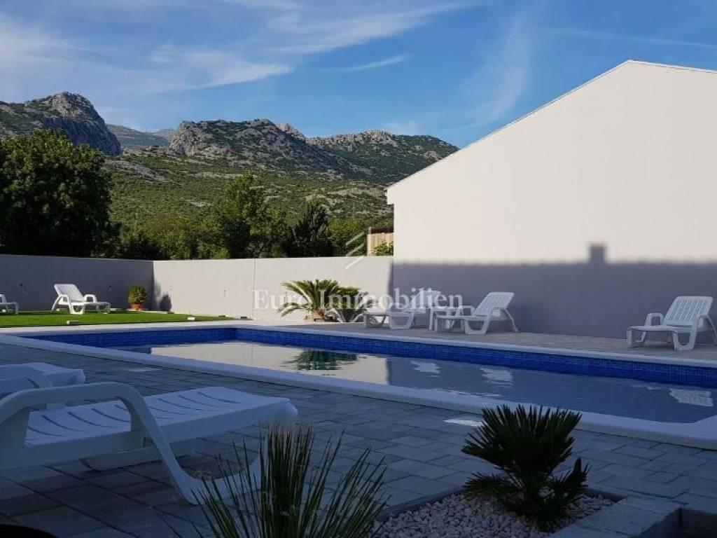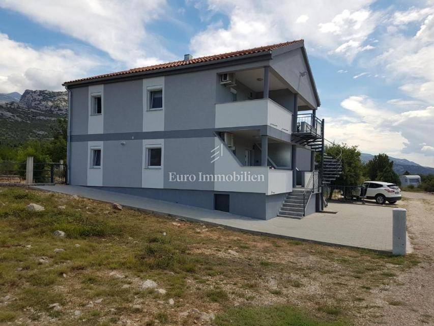 House for sale in the settlement of Seline in the municipality of Starigrad Paklenica. The property is located on a plot of 742 m2, surrounded by greenery, and has a view of the sea and Velebit.