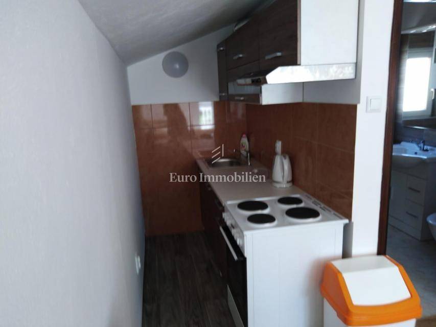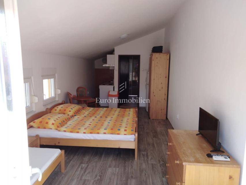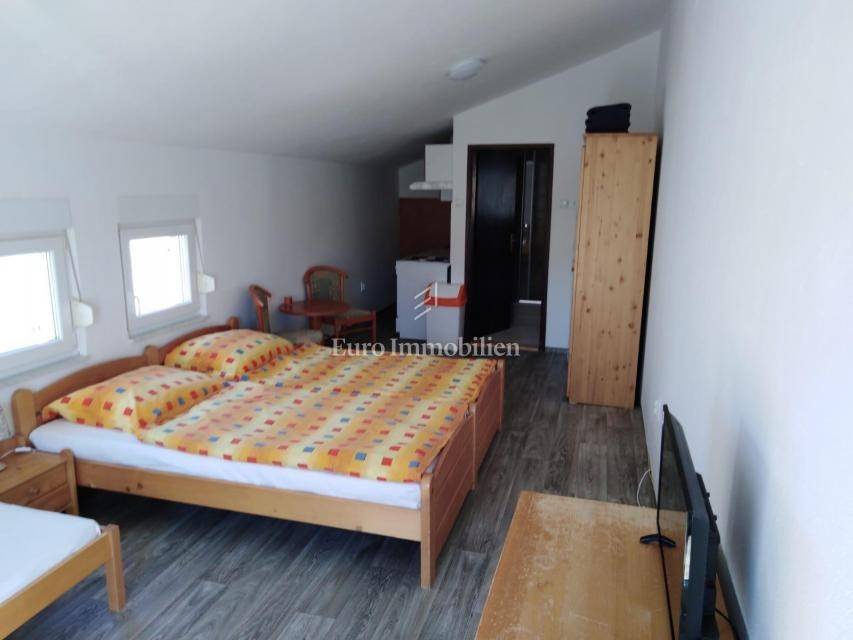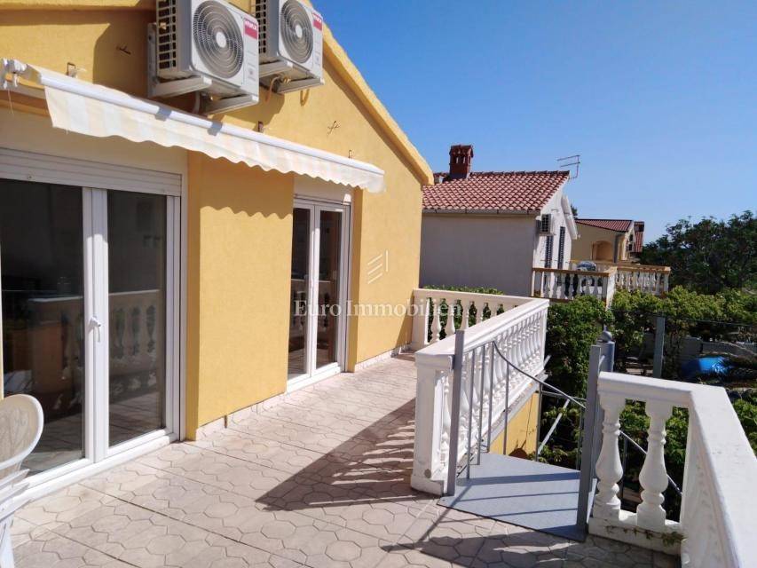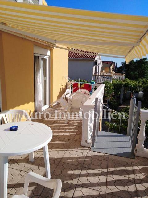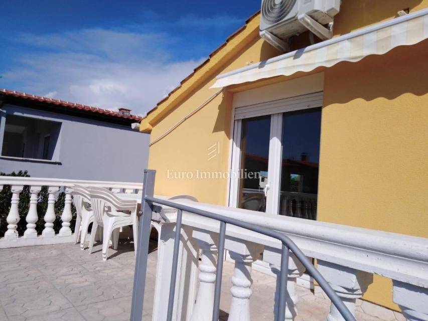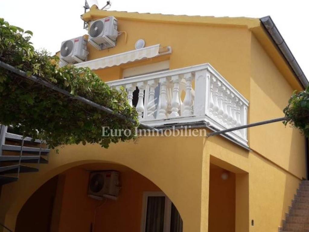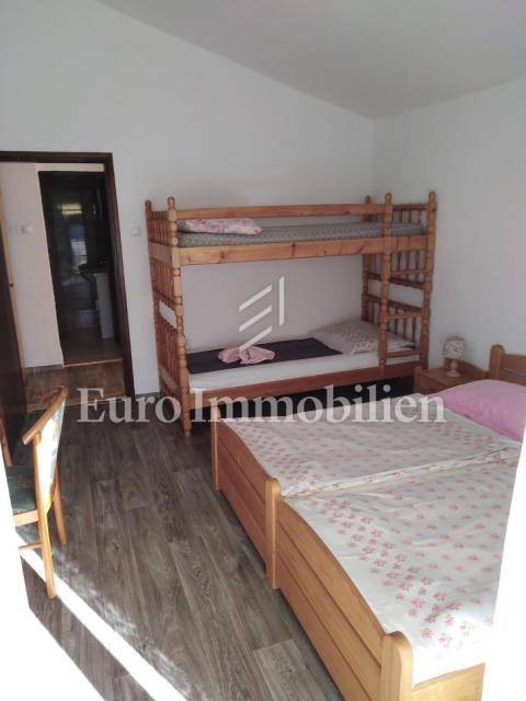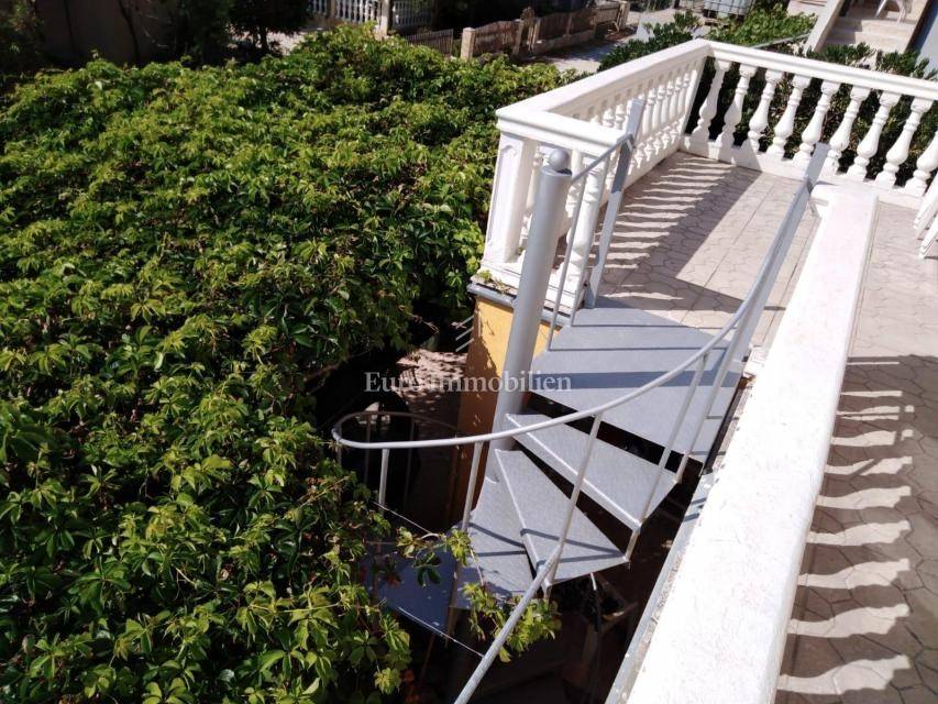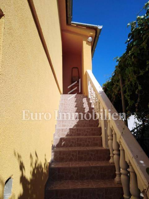 The house is spread over the ground floor and first floor. On the ground floor of 74.1 m2 there are two covered terraces, a kitchen, a living room, two bedrooms and a bathroom. On the 78.18 m2 floor, there is an uncovered entrance staircase, an entrance loggia, a hallway, a kitchen, a living room, two bathrooms, a living room with a kitchen and an uncovered terrace.