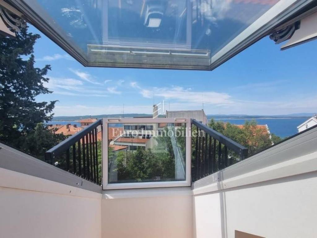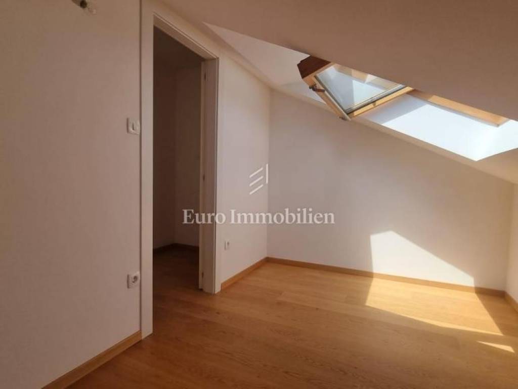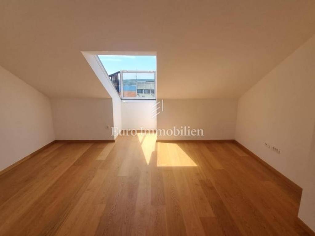 Apartment in the attic, good living height and excellent layout with two bedrooms, a bathroom and a larger living room and kitchen area. It has a roof balcony, which simply opens and brings in lots of natural light, fresh air, and an unobstructed view of the sea and the surrounding area. The parking space in front of the building.