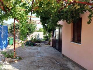 The house of 68.69 m2 extends to the ground floor. It consists of a bedroom, bathroom, dining room, kitchen and living room, two covered terraces, storage room and garage. On the large garden there is a swimming pool and an auxiliary facility of 28 m2 in which there is a summer kitchen and a barbecue. Four parking spaces and a garage are available.