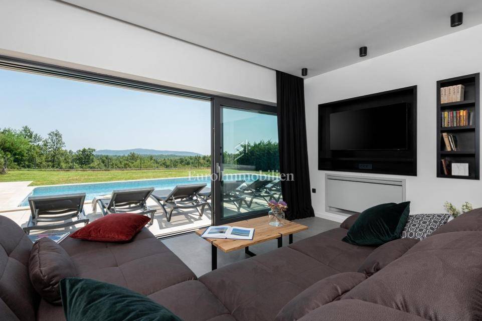A new house for sale with a swimming pool and a summer kitchen in the vicinity of Labin.