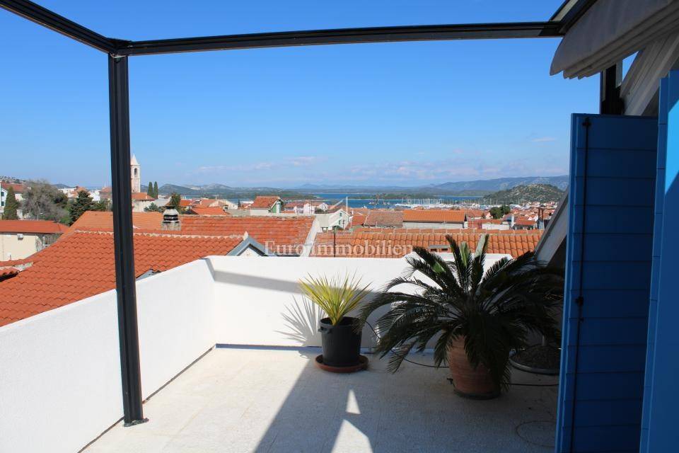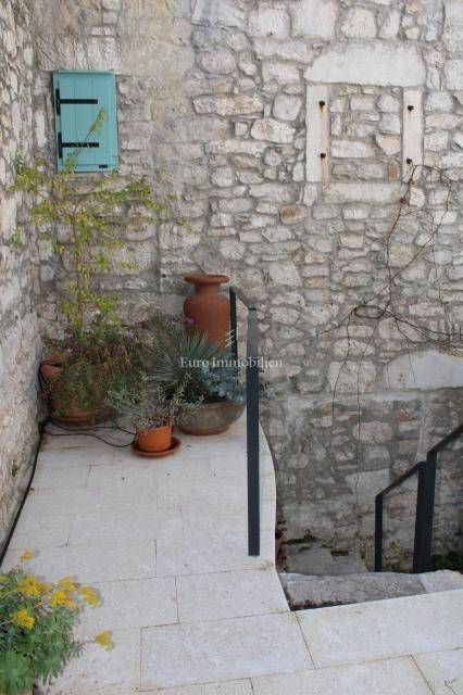 A stone house with an inner courtyard and a view of the sea is for sale in Murter.