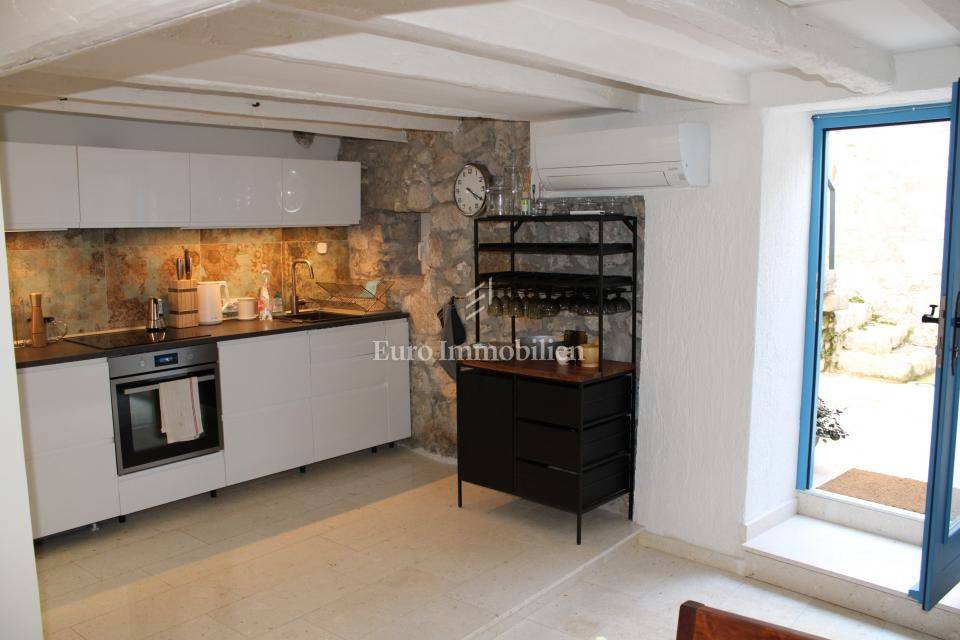 The house extends over the ground floor, the first and second floors, and the attic. On the ground floor there is a toilet, living room, kitchen and dining room. The first floor consists of a bathroom and one bedroom with access to the terrace, there is also an additional room that can be used as a children's room or a walk-in closet. On the second floor there are two bedrooms and a bathroom. The attic consists of a summer kitchen. There is a beautiful view of the sea from the attic. It was renovated in 2023. It has a modern kitchen and stone floors, an internal courtyard, and an electric canopy on the roof. They are available