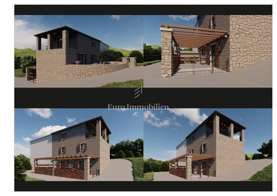 An old stone house under renovation with a sea view is for sale in the vicinity of Buje in Istria. The house is the last in the row, it extends over three floors, with a total area of 145 m2. In front of the house is a yard of 60 m2, and across the road is a plot of 100 m2 that will be used for parking spaces and for additional facilities. On the ground floor of the house there are a kitchen and a living room, on the first floor there are two bedrooms, two bathrooms and an exit to the yard. On the top floor is a separate, larger bedroom with its own bathroom and a terrace with a beautiful view of the sea and nature.