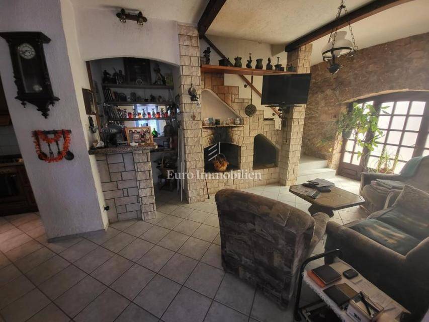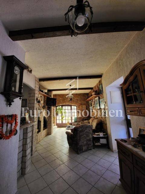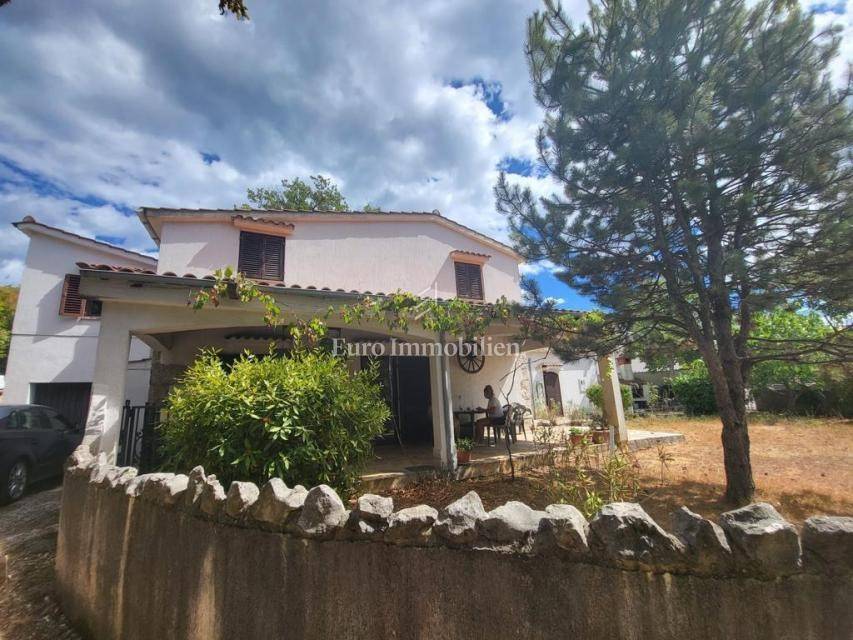 The property is located in Kras and was built in 1995. It is located in a quiet location at the end of the village, surrounded by greenery. The house has 85m2 of living space, consisting of a ground floor and a first floor. On the ground floor, there is a living room with a fireplace, a kitchen, and a dining room; on the first floor, there are three bedrooms, a bathroom, and a terrace. The house has two entrances, a covered terrace with a garden, and a garage. Above the garage is a workshop with a separate entrance that can be converted into an apartment. A tavern with a brick grill is located in the garden for pleasant gatherings with friends and family. Great opportunity for family life or tourism!