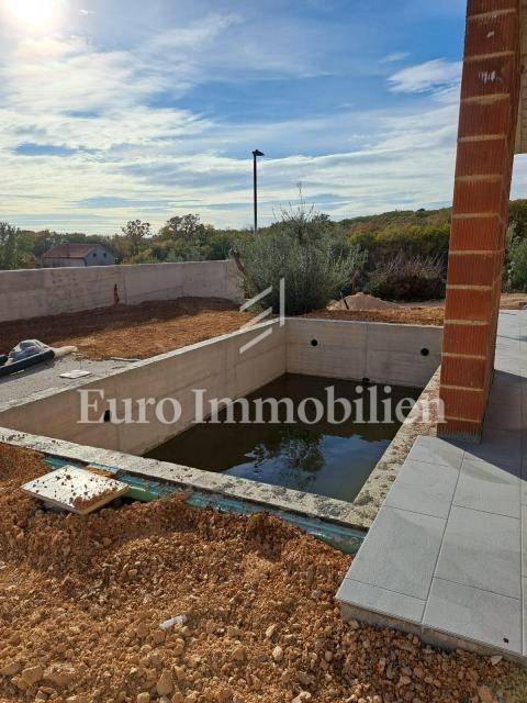 A modern detached villa with a pool and sea view under construction near the town of Krk is for sale!