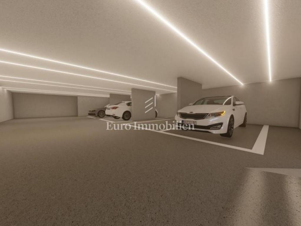 The apartment is located in the city of Krk. It has a residential area of 89.32 m2 and extends over three floors. On the ground floor there is an entrance area, a living room and a kitchen with a dining room, a toilet, a staircase and a terrace with access to the garden. On the first floor there are two bedrooms, a hallway, a bathroom and a balcony, and on the second floor there is a gallery (room) with a bathroom and access to a beautiful terrace with a jacuzzi. The building is currently under construction. During construction, high-quality materials and equipment are used. The apartment will have underfloor heating and a fan coiler heating and cooling system. The apartment also has a parking space in the garage and in the outdoor parking lot. In the garage, there will be preparations for a charging station for electric cars. Excellent position near the sea and all amenities!