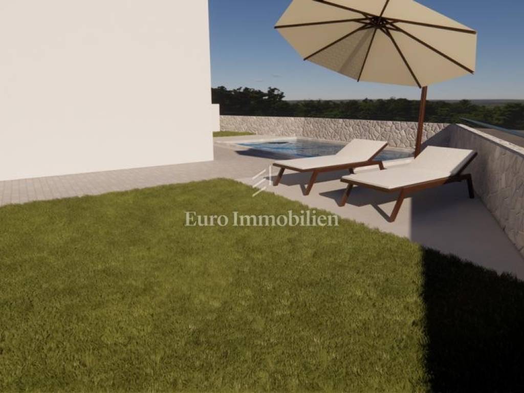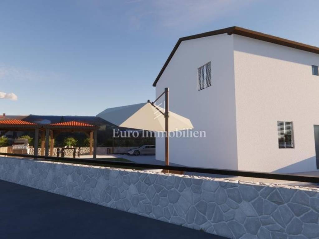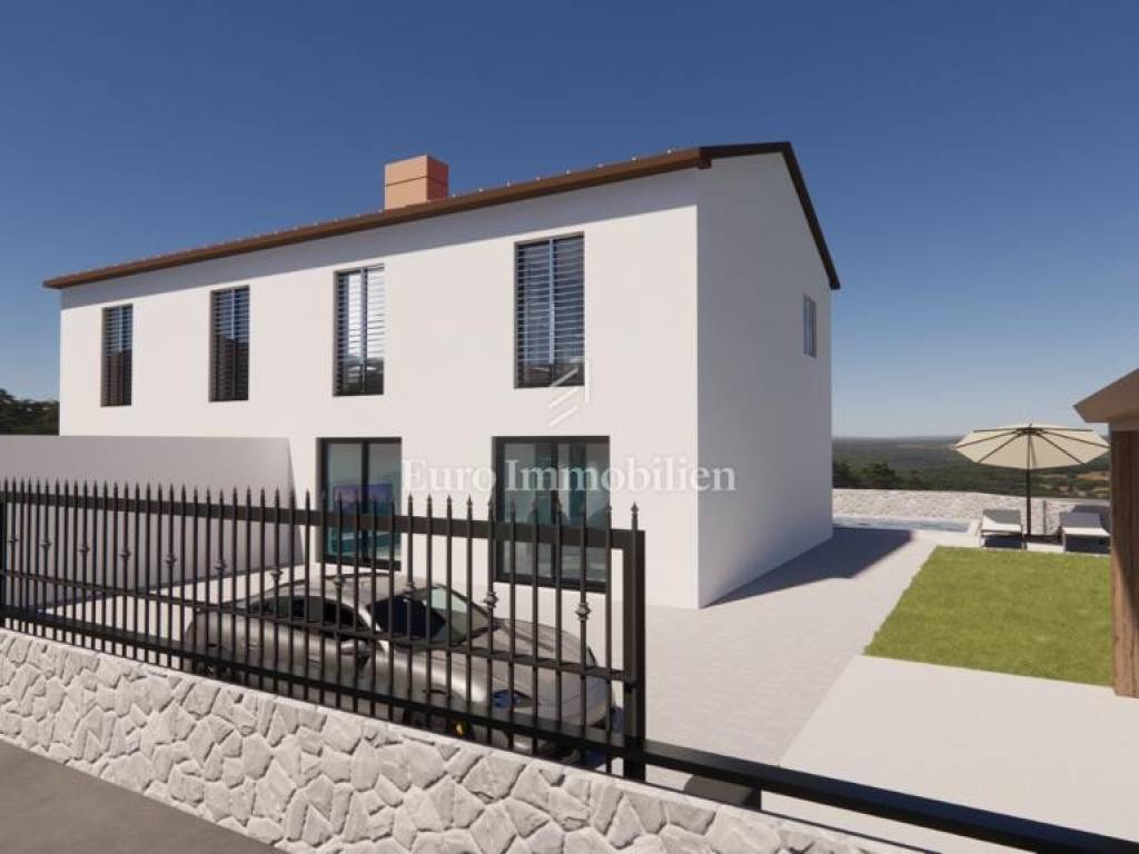 Semi-detached house with a swimming pool under construction in a quiet location near Vrbnik on the island of Krk is for sale.