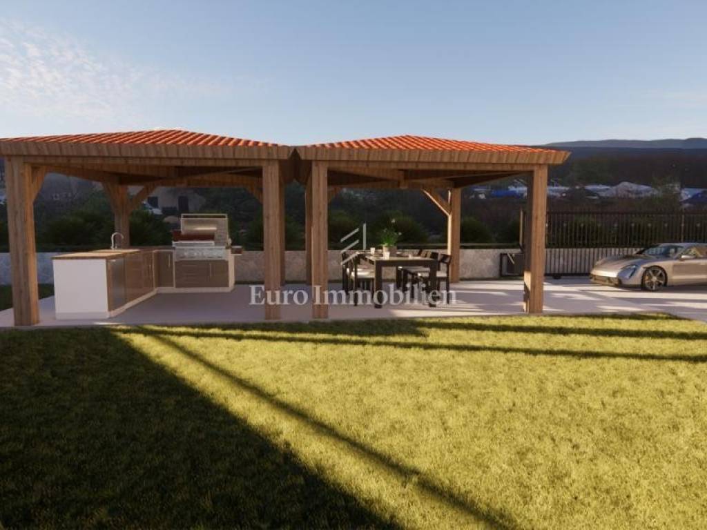 Semi-detached house with a swimming pool under construction in a quiet location near Vrbnik on the island of Krk is for sale.