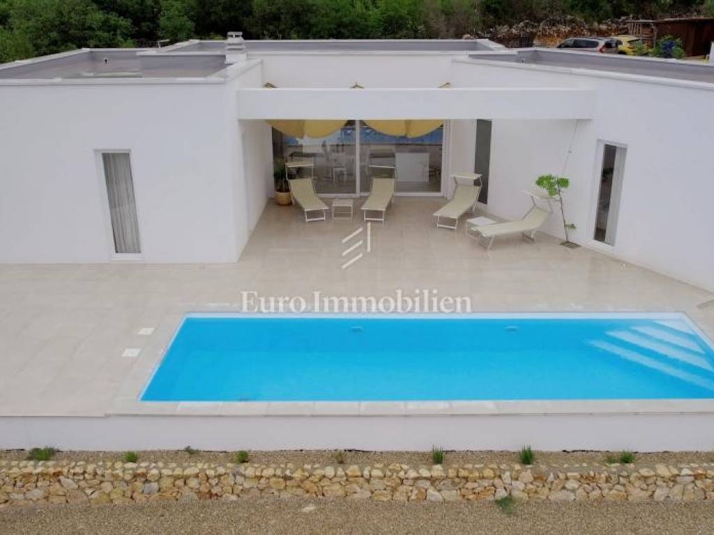 A modern house for sale with a beautiful view of the sea, newly built in a quiet location near the town of Krk.