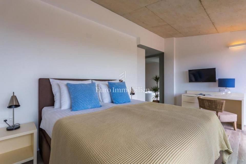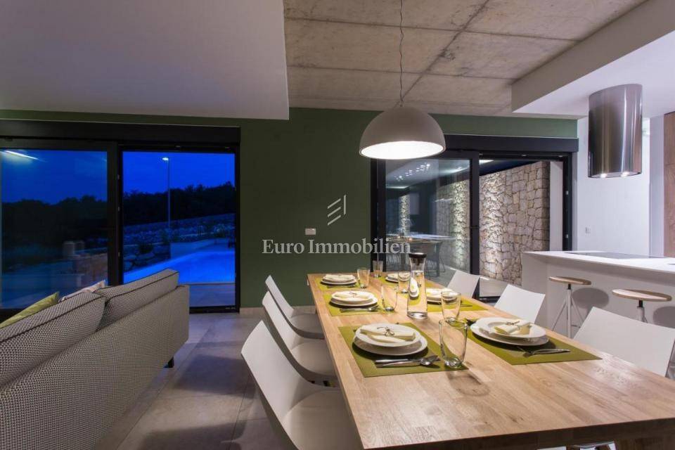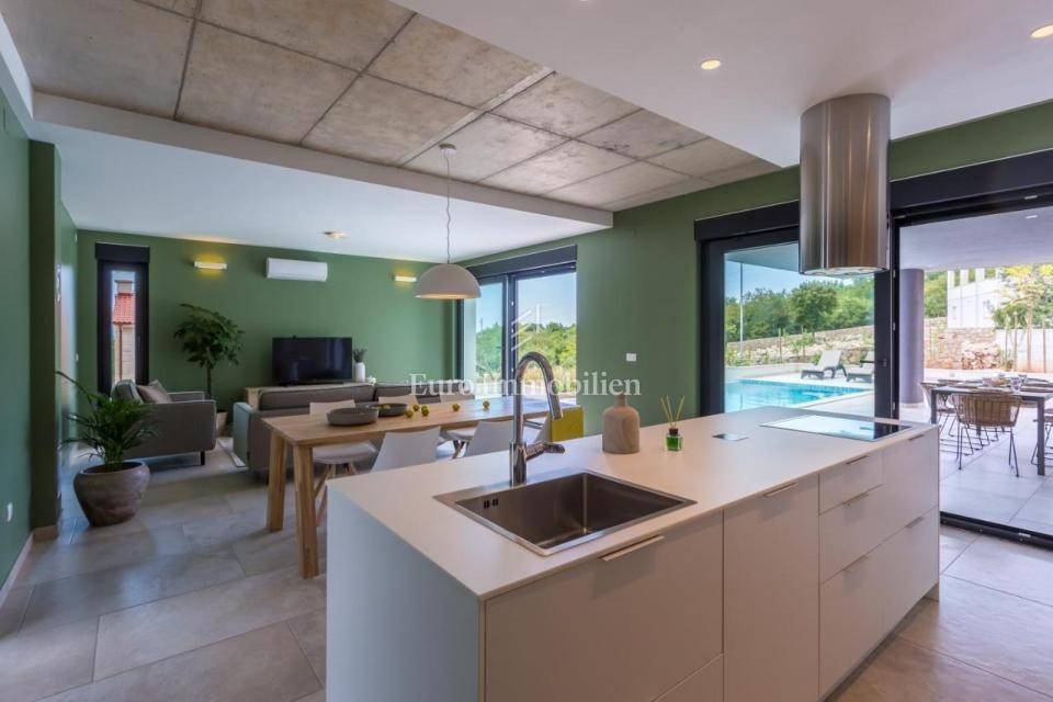 For sale is a luxurious, modern villa with a swimming pool and a view of the sea in a quiet location near the town of Krk.