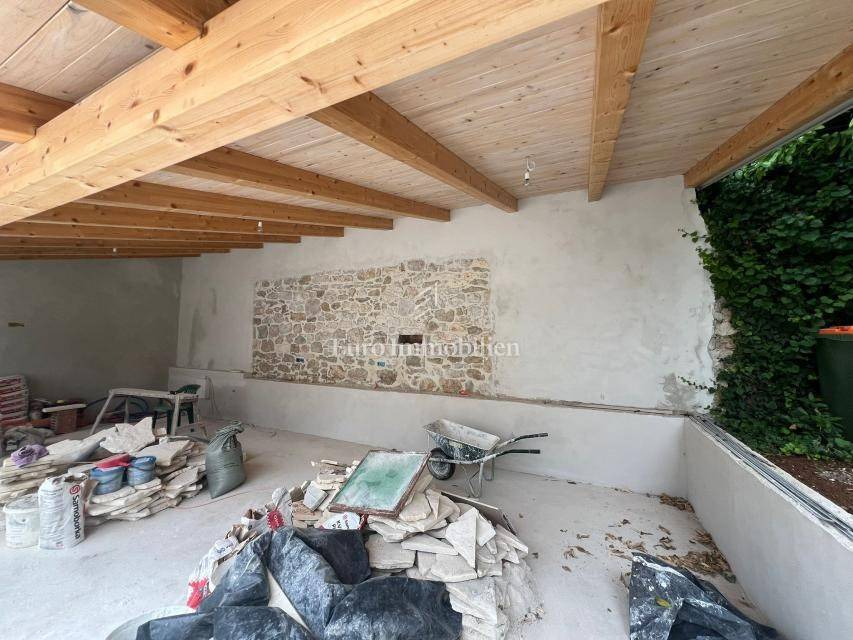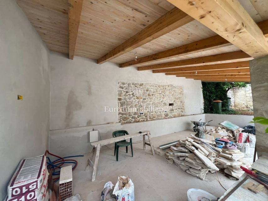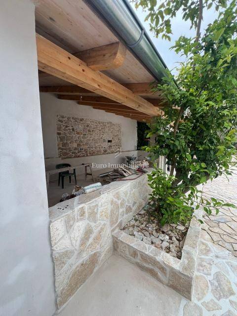 The house was recently renovated, and a lot of attention was paid to the details and the rustic style of decoration, with lots of stone and wood details that emphasize the traditional Dalmatian style. The house has a new roof, waterproofing, screed, new three-phase electricity, and a bio-septic tank. The exterior carpentry is made of wood, made to measure. It is necessary to complete the floor coverings in the bathrooms and sanitary facilities. There is a possibility of installing a jacuzzi and arranging an additional apartment for tourist rental.