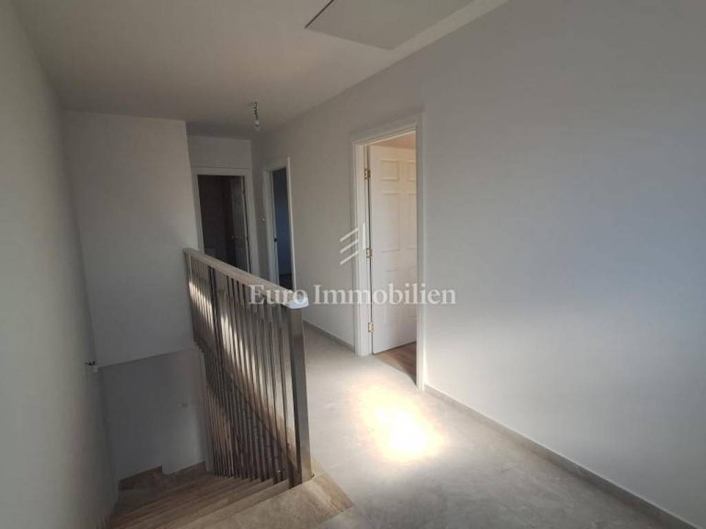 A new detached house with two duplex apartments is for sale. Each residential unit on the ground floor has an open space living room, kitchen, dining room, bathroom, exit to the terrace and garden with swimming pool and sunbathing area, while on the first floor there are two bedrooms, a storage room, and a bathroom.