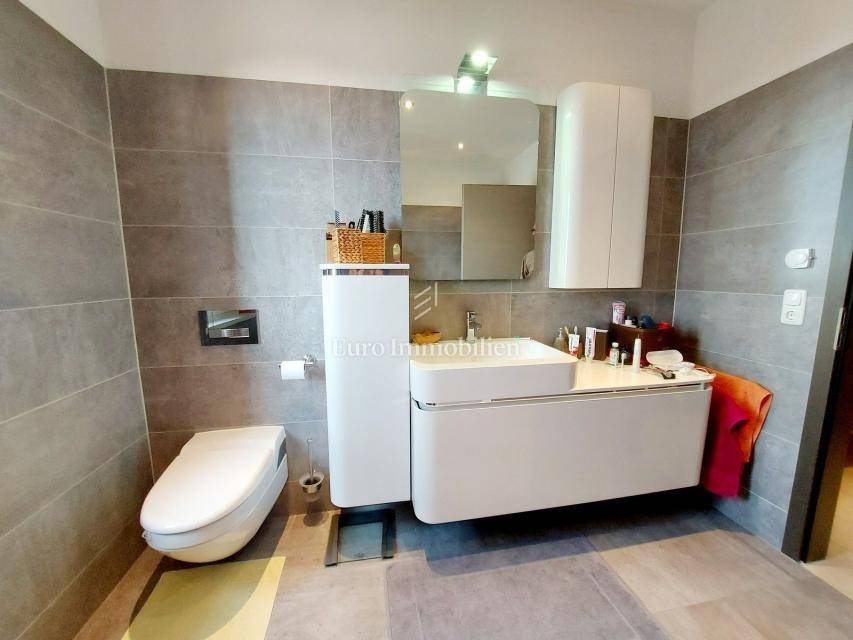 This modern villa, equipped with top quality furniture, is spread over three floors connected by an internal staircase.