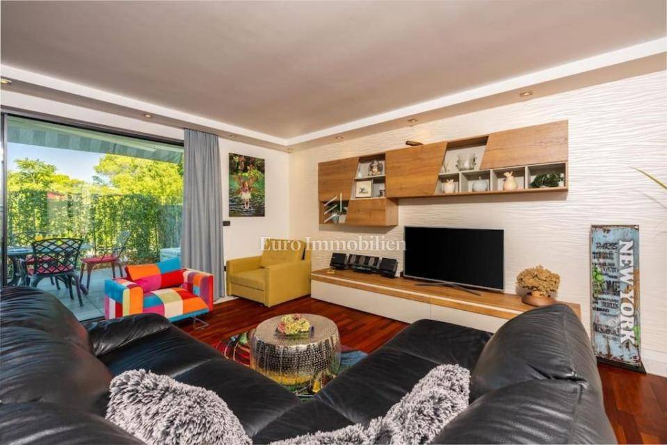The apartment is well-built and equipped with underfloor heating and air conditioning. It features a landscaped garden of 80 m², and a dedicated parking space is included in the ownership.