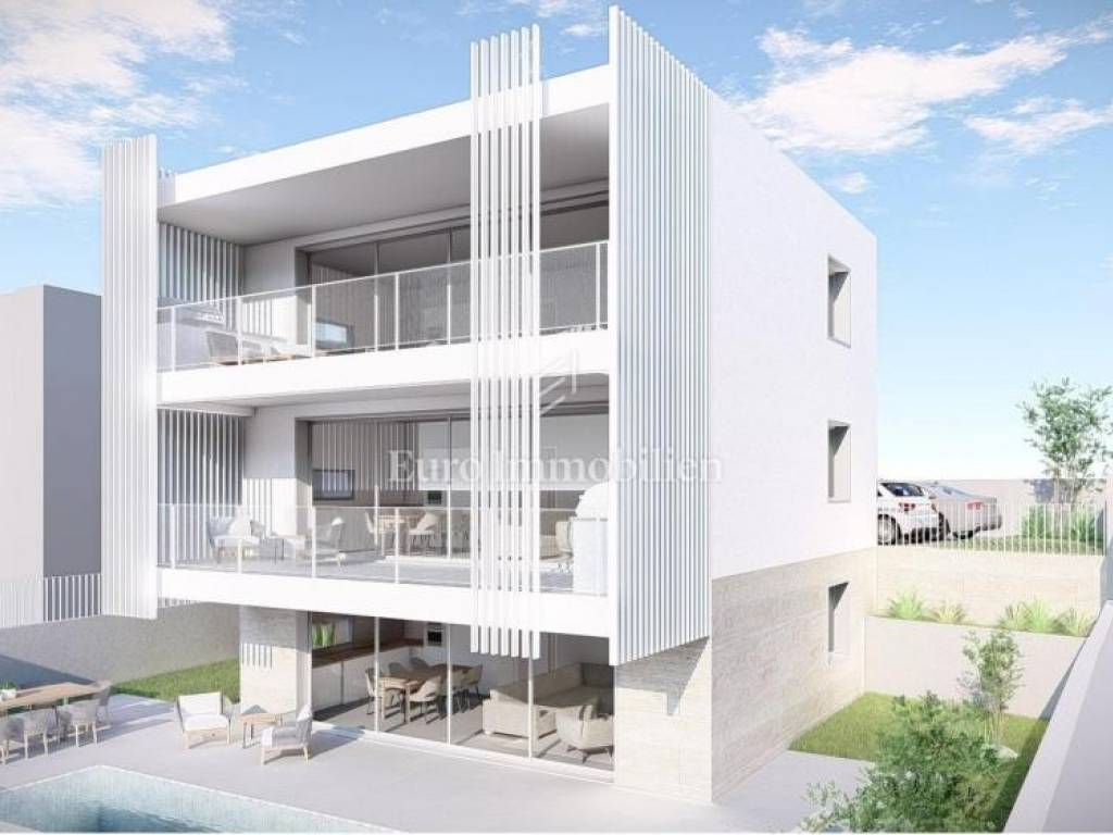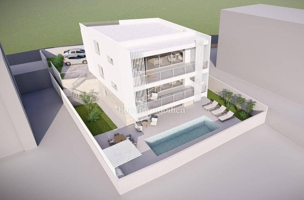 A modern furnished apartment on the ground floor of an urban villa in a new building in the center of Krk is for sale.
