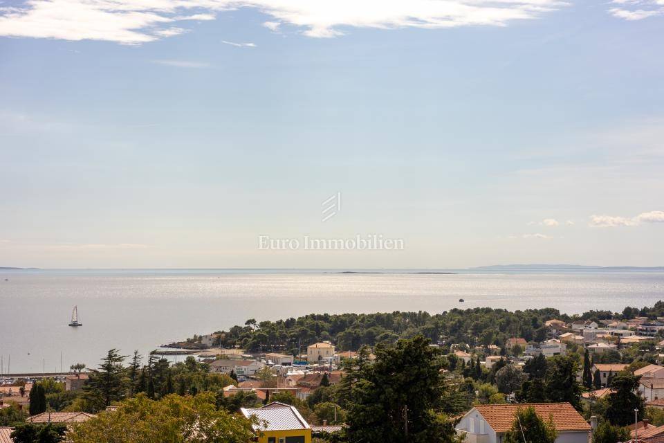 It extends through the entire second floor and consists of three bedrooms, two bathrooms, a hallway, an open concept room that unites the kitchen, dining and living room and a large terrace of 30 m2 with a view of the sea and the city of Krk.