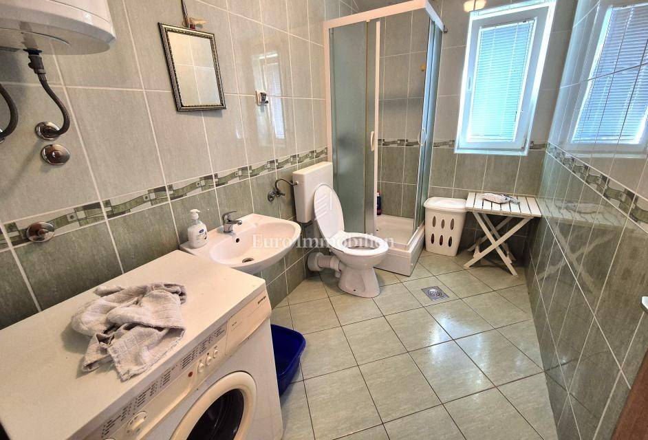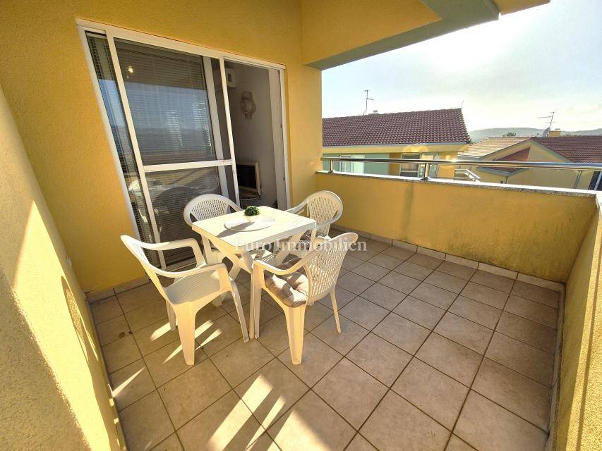For sale is a furnished apartment consisting of one bedroom, living room, bathroom and a beautiful terrace with an open view of the sea. It is located on the second floor of a smaller apartment building with a total of 6 apartments, in a quiet location next to a green area. It is about 500 meters from the sea and 700 meters from important amenities. The apartment also has one outdoor parking space.