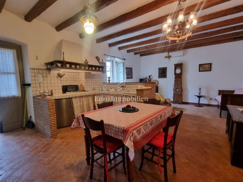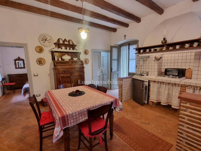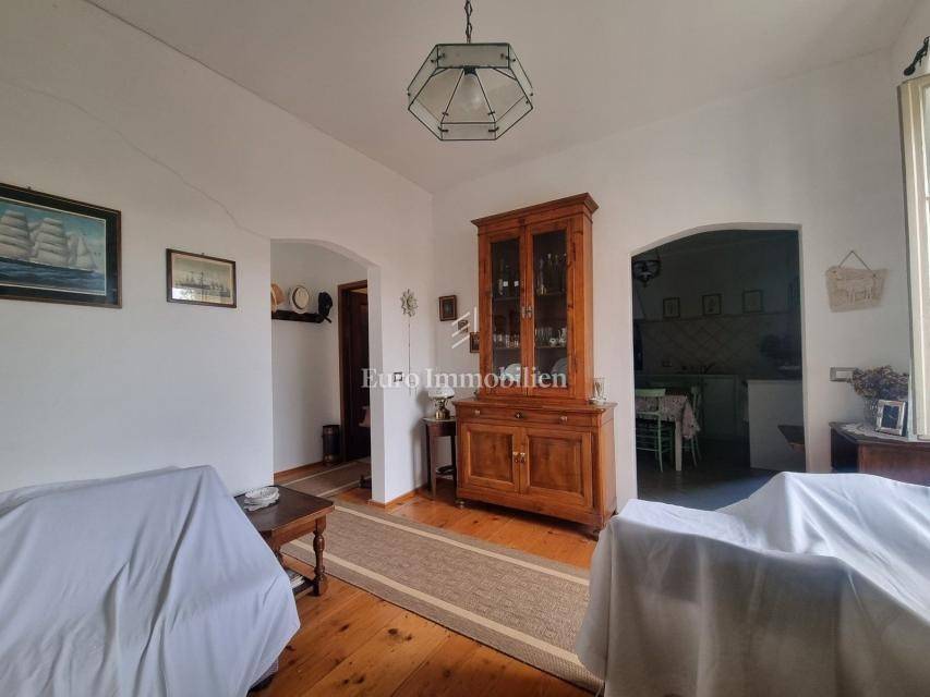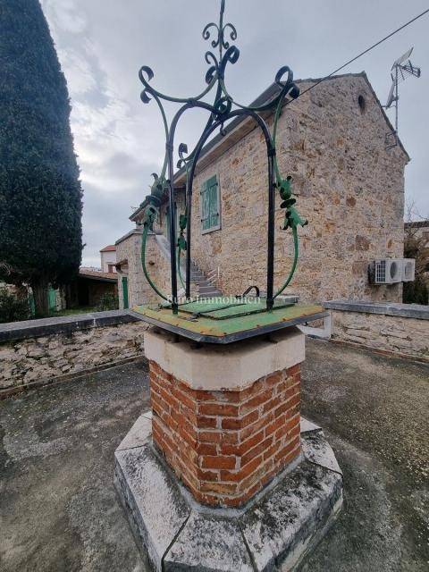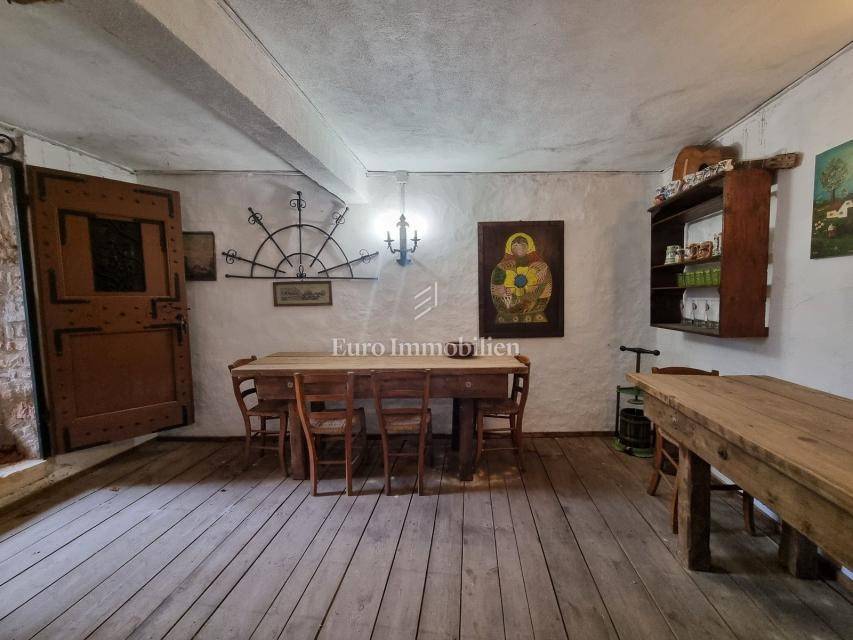 On the ground floor there is an apartment with a kitchen, dining room, living room, two bedrooms and a bathroom. External stairs lead to the second apartment which also consists of a kitchen, dining room, living room, hallway, bathroom and bedroom. The house also has a spacious garden, a summer kitchen and a wine house and a tavern with a cistern. The house has a garden with enough space for additional facilities: installation of a swimming pool, parking.