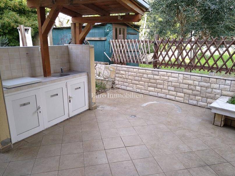 The ground floor has an entrance hall, dining room and kitchen, while stairs lead to the first floor, which has two bedrooms and a bathroom. The second floor also has two bedrooms, a bathroom and a balcony with a partial sea view. All rooms in the house are neat and air-conditioned, and the house is equipped with a total of six air conditioners. Behind the house is a 45 m² yard, with a covered terrace and a summer kitchen, ideal for enjoying the outdoors.