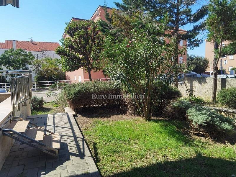 This apartment consists of two bedrooms, a bathroom with toilet, a living room with kitchen and dining room, and a large terrace of 28.80 m² with an awning, which opens onto a beautiful garden. The apartment is fully furnished, and air conditioning is in all rooms. It also has a parking space of 11.50 m². There is an option to purchase a garage. The beach is only a 10-minute walk away. The ownership is in order, and the apartments in the building are not rented out!