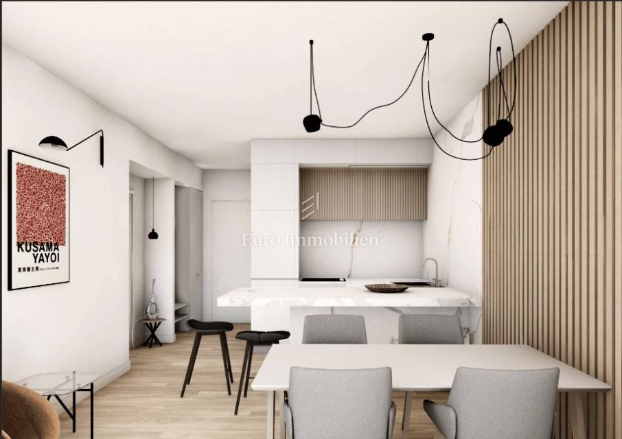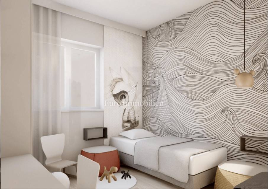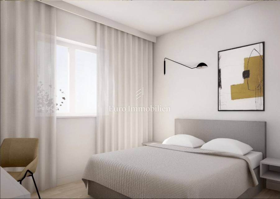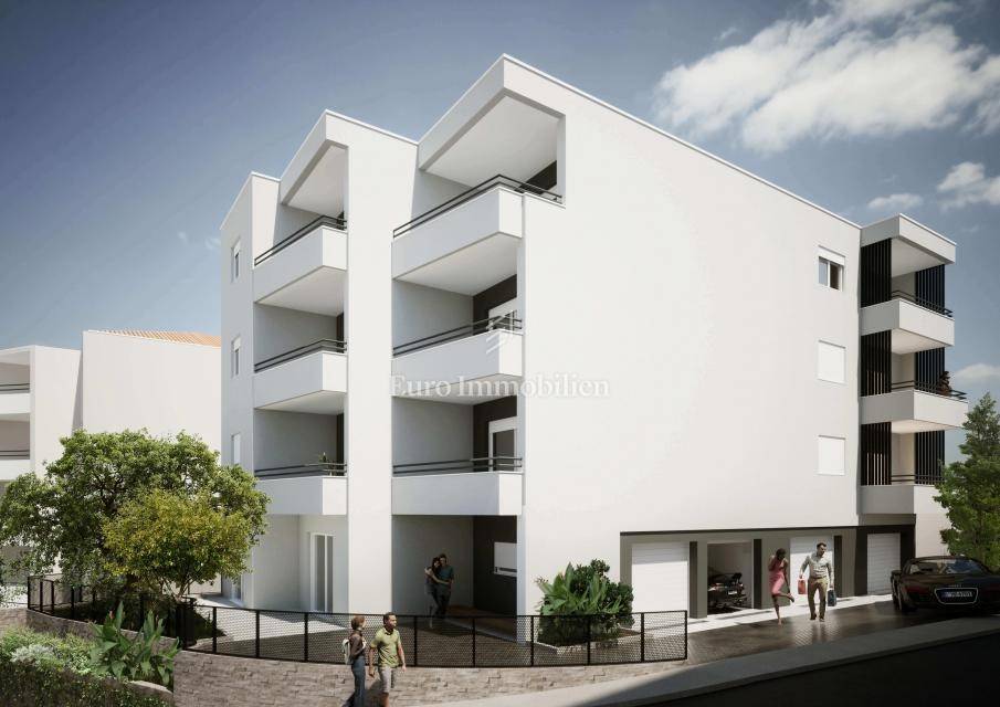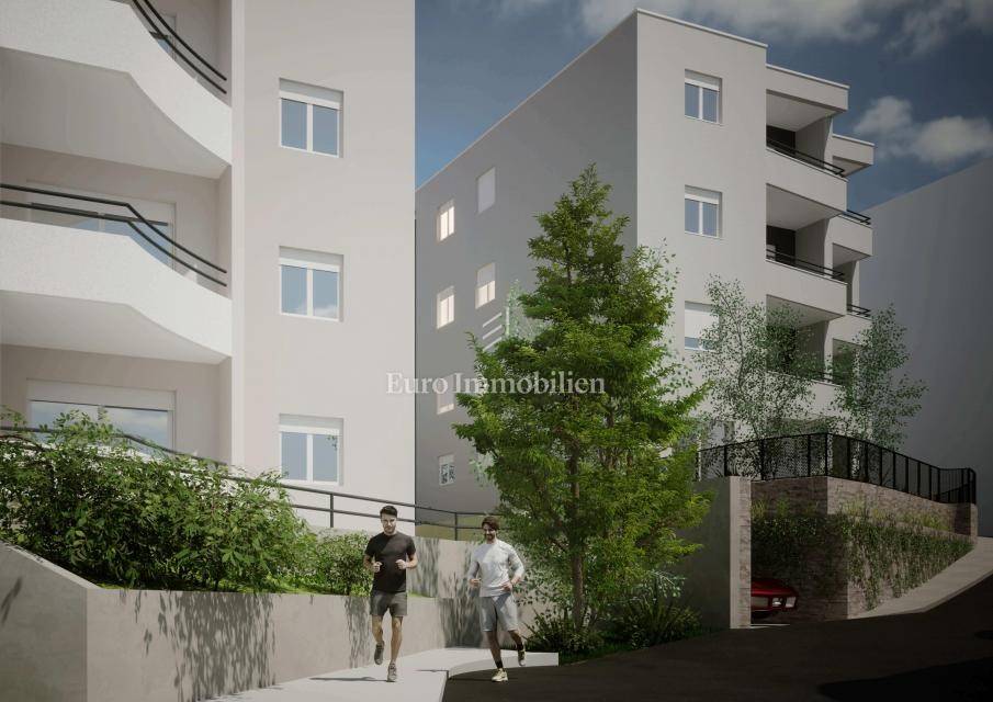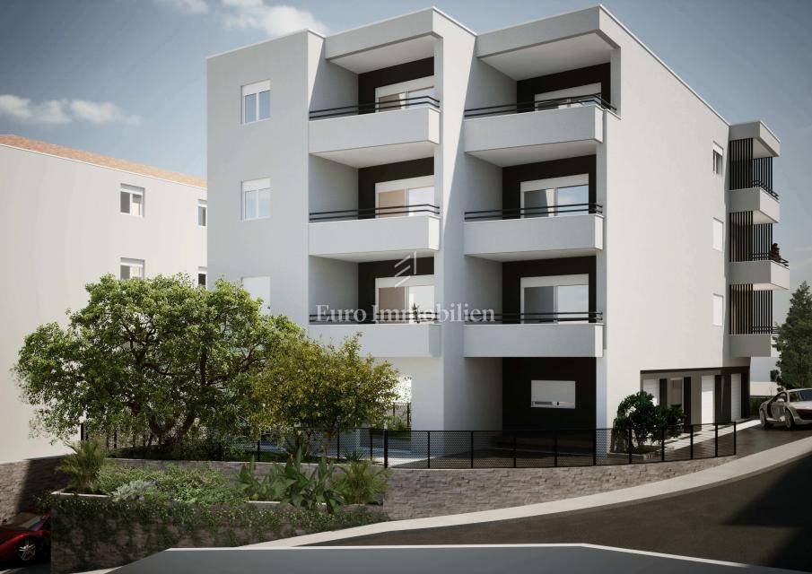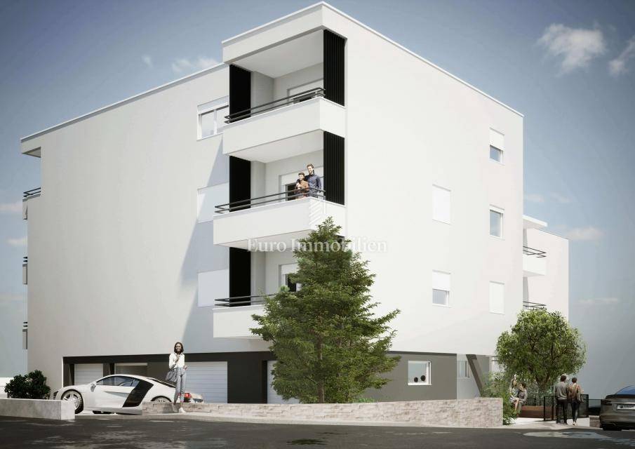 Apartment S08 is located on the third floor of the building, with an area of ​​94.44 m2 and consists of three bedrooms, kitchen, hallway, living room with dining area, two bathrooms, utility room and two balconies with areas of 6.96 m2 and 10.22 m2. The building consists of a basement, ground floor and 3 floors with a total of 8 apartments. High quality materials were used in the construction - parquet in the rooms, 1st class ceramic tiles on the balcony in the kitchen and bathroom, LED lighting, security doors, installations for TV, satellite, Internet, each room is air-conditioned, the bathroom is fully equipped for use with a walk-in shower and installed underfloor heating, PVC openings with roller shutters, exceptionally high quality sound and heat insulation. The building is located in an attractive location in the eastern part of Makarska, a quiet family neighborhood near the shopping center, city swimming pool, children's playground and high school. It is a 7-8 minute walk on level ground to the waterfront, the sea and the city beach. Moving in is planned for 04/2025. The price of the apartment is 3950 euros/m2. Garage prices are 25,000 - 40,000 euros depending on their area. The apartments can be reserved immediately. The owner is a company, so the buyer does not pay the 3% real estate tax when purchasing the apartment. The building permit and ownership are in order.