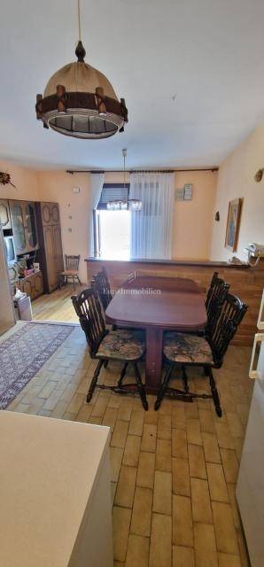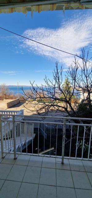 The apartment is located on the first floor of a semi-detached house, and consists of a living room, a kitchen with a dining room and a toilet. The living room leads to a small covered terrace with a fireplace. On the upper floor there are three bedrooms and a bathroom, and both balconies offer a view of the sea, which is only 300 meters away. The apartment comes with a garage with a basement. Purchases are possible only for cash.