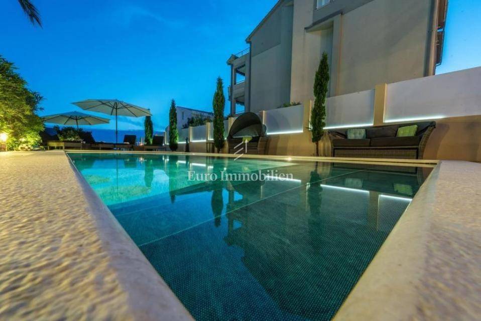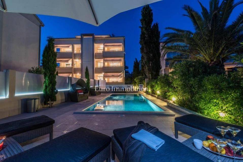 Apartment with private access to the beach, within the garden there is a heated swimming pool, a gazebo for 10 people with a grill.