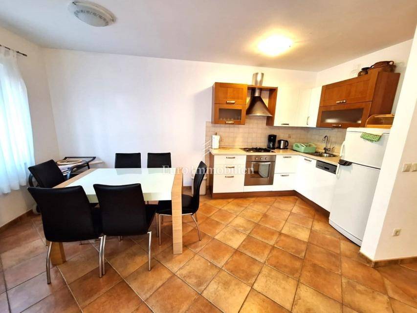 Ground floor apartment for sale, 67 m2, with its own private garden of 200 m2. The apartment consists of two bedrooms, living room with kitchen and dining area, bathroom, utility room and terrace. The apartment is furnished, air-conditioned.
