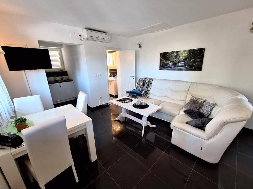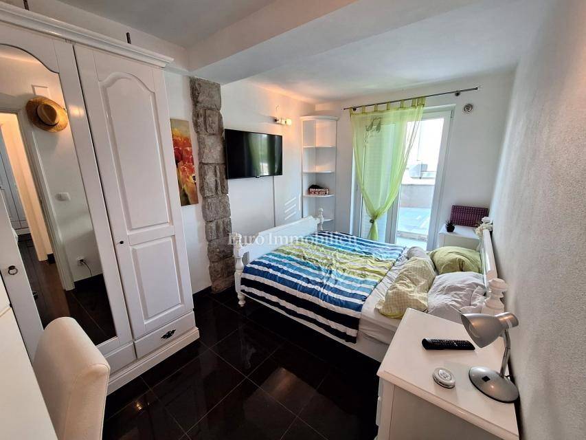 Upstairs there are two apartments, each with a separate entrance. Each apartment offers a bedroom, living room with kitchen and dining room, bathroom, terrace and loggia - with a sea view.