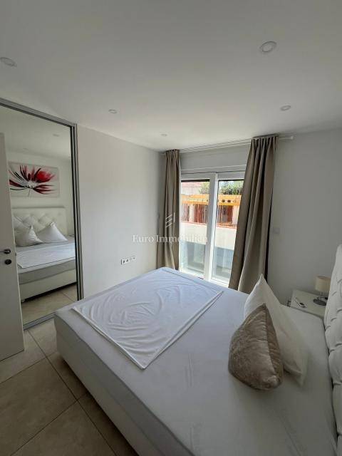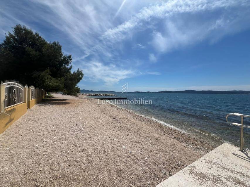 Apartments for sale on the ground floor of a residential building in Bibinje in an attractive location in the first row to the sea. The apartments are fully equipped with custom-made furniture (slightly used), the barbecue is shared, all rooms are air-conditioned (split system), underfloor heating is installed throughout the apartment, first-class ceramic tiles, a wood-burning fireplace, fire and burglary doors, video intercom.