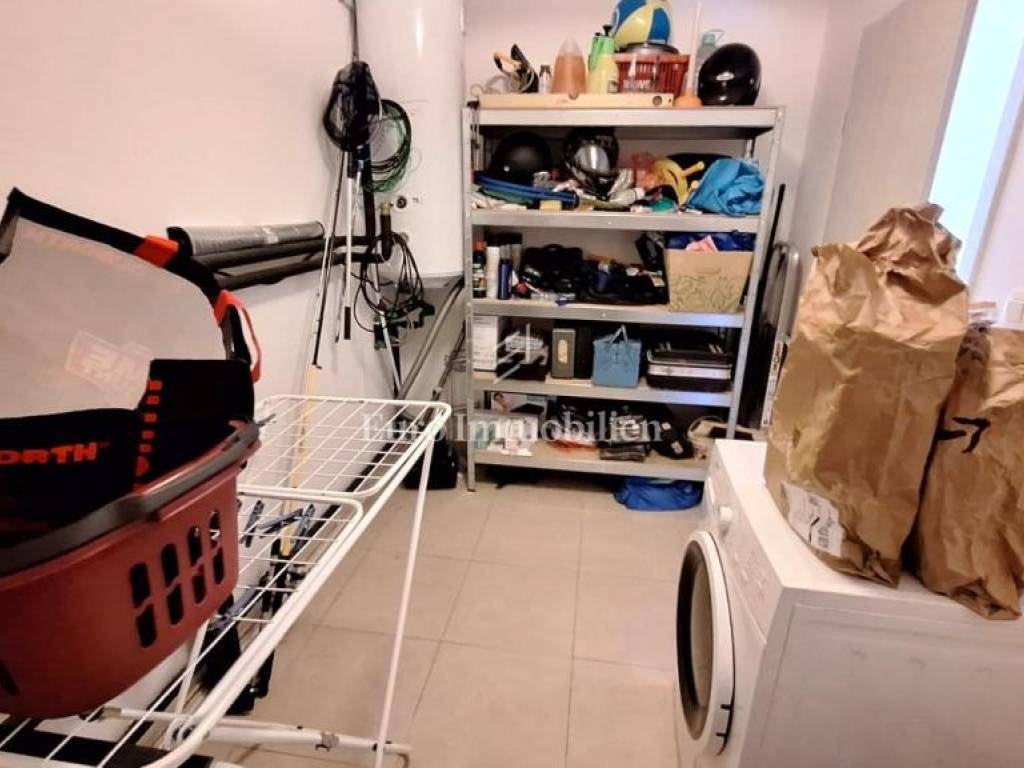 The house has a garage with a laundry room and a storage room. In addition to the garage, the house also has three outdoor parking spaces.