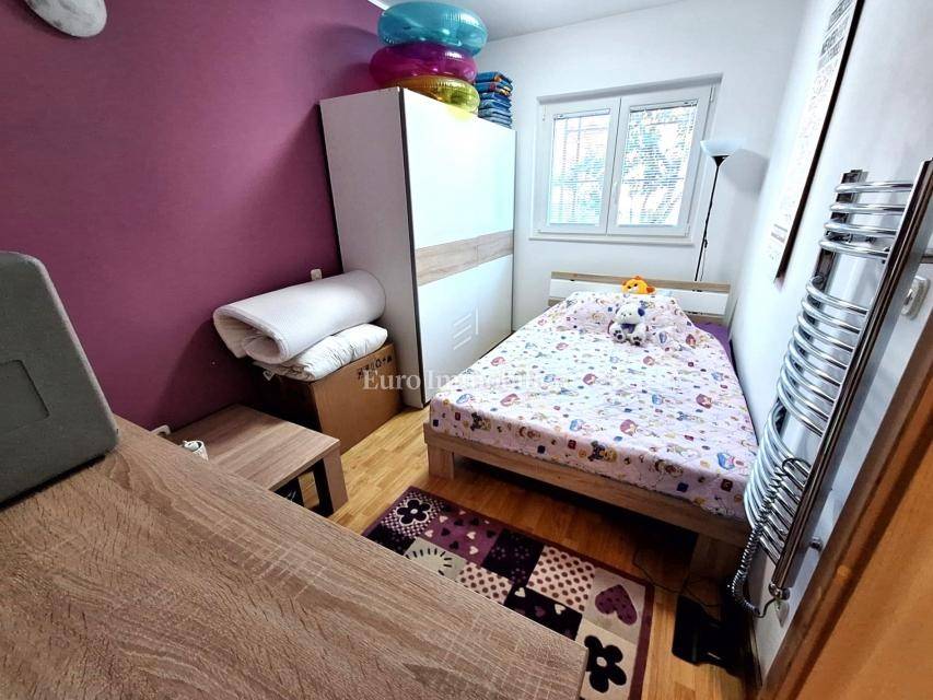 Apartment for sale in the city of Krk, surface area 54.80 m2 + closed terrace 19.60 m2. The apartment is located on the ground floor and consists of two bedrooms, living room with kitchen and dining room, bathroom and hallway. The apartment has a beautifully landscaped garden of 74 m2, easy to maintain. It also has one parking space.