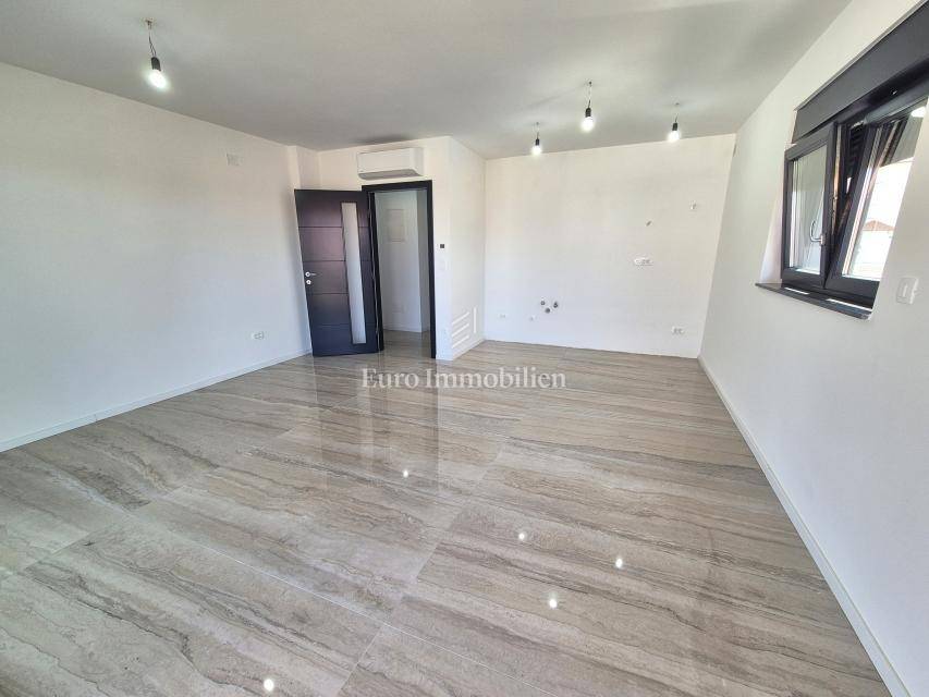 The apartment is located on the first floor of a residential building with a total of three residential units. It consists of a hallway, living room with access to a terrace with a beautiful view, kitchen and dining room, two bedrooms and two bathrooms. The property was built in 2023 and the highest quality equipment was used in the construction. The apartment is fully air-conditioned and has underfloor heating. It comes with one parking space with an electric vehicle charger. It is located in an excellent location in Malinska, approximately 650 meters from the sea.
