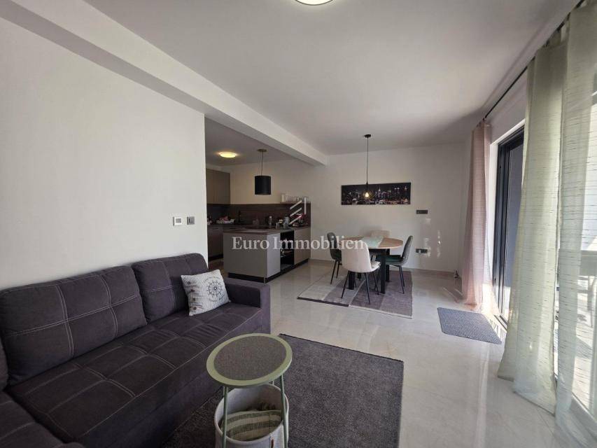 The apartment was designed and decorated with special attention to functionality and aesthetics and consists of a kitchen with a dining room and a spacious living room in an open space concept, from which you can exit to a spacious terrace (of which 15.35 m² is covered and 50 m² is uncovered) ideal for socializing and relaxing, two bedrooms, modern bathrooms and a hallway that connects all rooms into a harmonious whole.