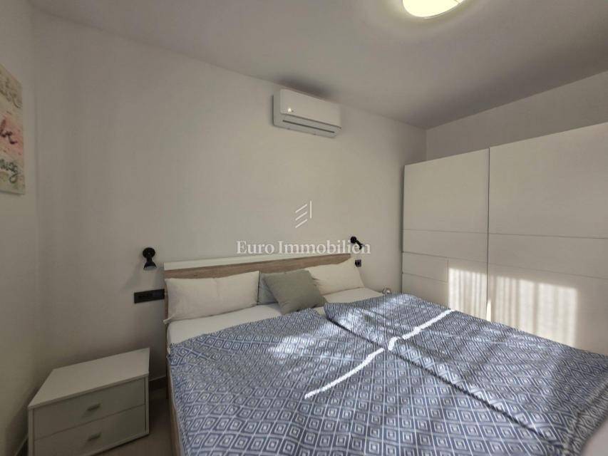 The apartment is sold fully furnished, air-conditioned and equipped with underfloor heating, which ensures a comfortable temperature throughout the year. Within the private garden there are parking spaces for several vehicles, which is an additional convenience for owners and guests. This is an ideal choice for those looking for a quiet family home, a weekend oasis or a vacation in the summer months
