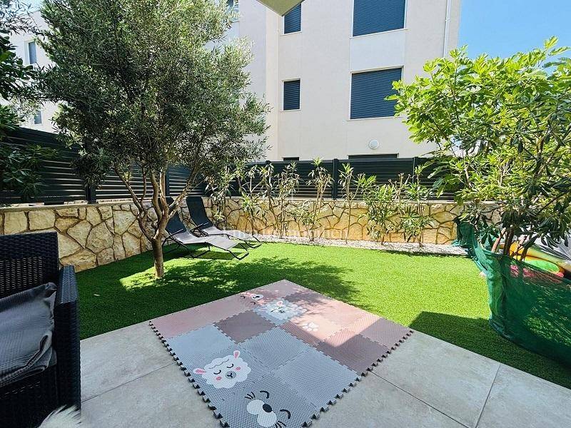The apartment is air-conditioned and fully furnished. It includes a garden of 21.08 m² and two parking spaces totaling 25 m². Excellent location – only a 7-minute walk to the beach.