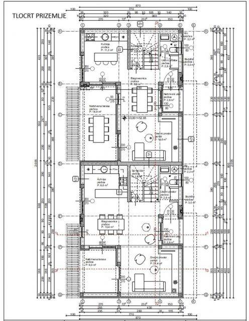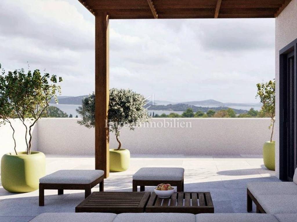 For sale is a duplex apartment S2 in a quiet part of Vodice, situated in a house with only two apartments. The ground floor features a living room, kitchen, dining area, WC, storage and a covered entrance, while the first floor offers three bedrooms, two bathrooms and a covered terrace.